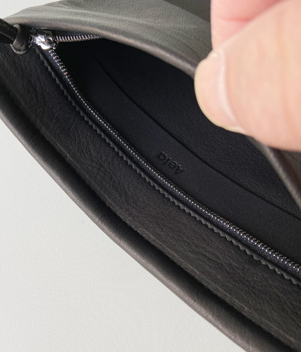AetaからDOUBLE FACED THIN SHOULDERが入荷しました。肌触りが良いディアレザーを敢えて薄く整え、2枚の革を貼り合せて成形したレザーを使用。軽く耐久性があり、経年変化を楽しめます。普段使いに勝手の良いサイズ。