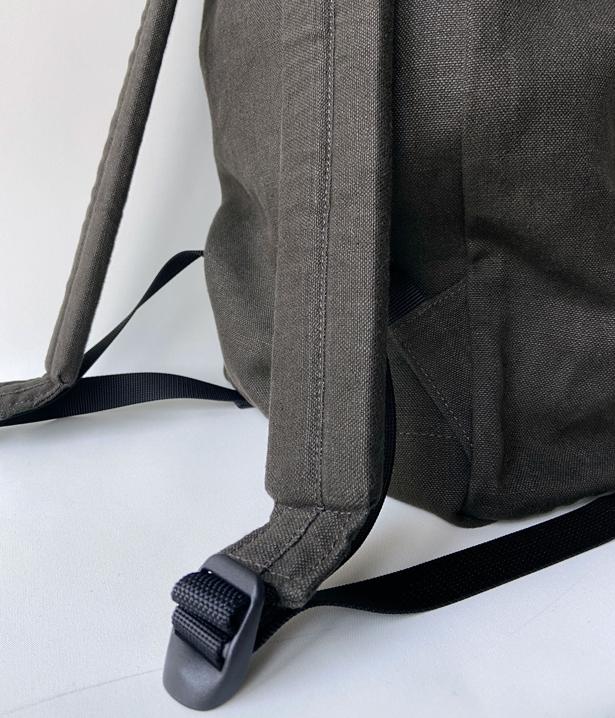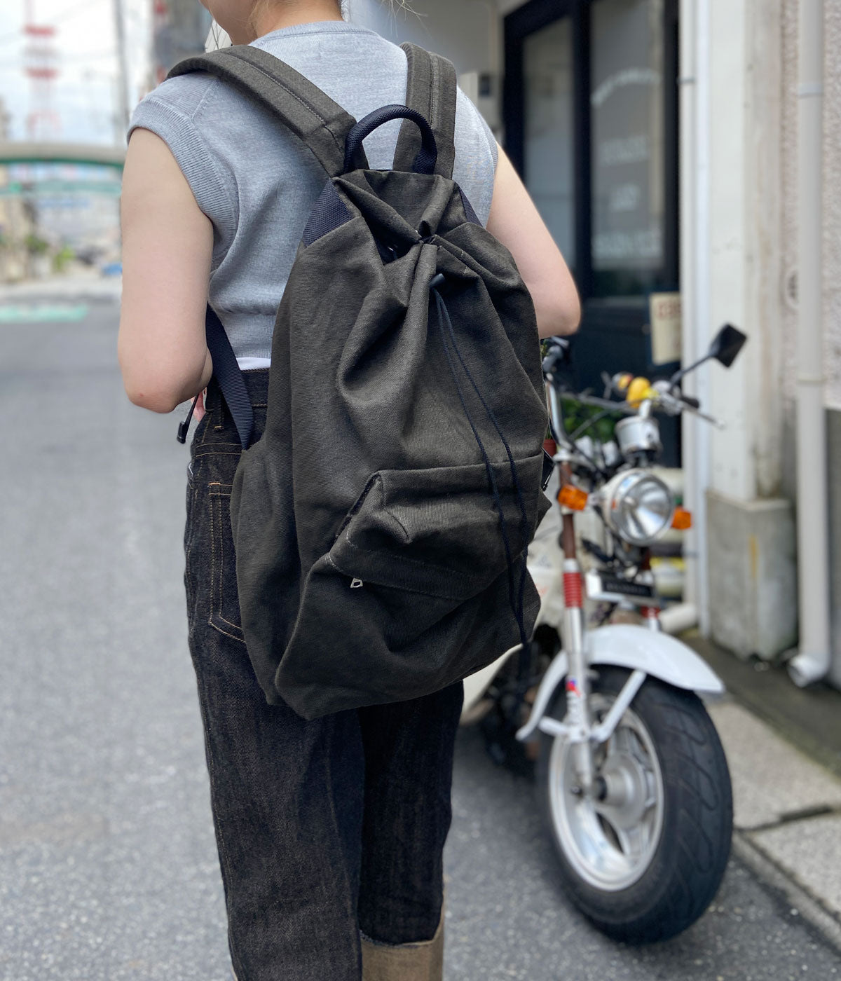 AetaからBACKPACK DC:Mが入荷しました。麻を使い、くたっとした柔らかさとがさがさした質感が魅力のバックパック。上部をアジャスターで開閉可能。シンプルな構造で収納力が高く、外ポケットも大きく使い勝手良し。普段使いにちょうど良いMサイズ。