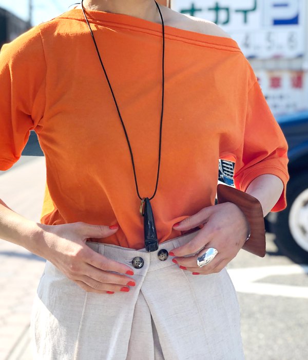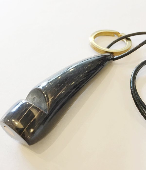水牛の角で作られた、笛ネックレス。自然の色・フォルムをそのまま生かしたデザインが成されています。キーリングは使うほどに味の出る真鍮製。また革紐の長さを調節するパーツにも水牛を使用し、細部にまで拘りを詰め込んだ仕上がりとなっています。