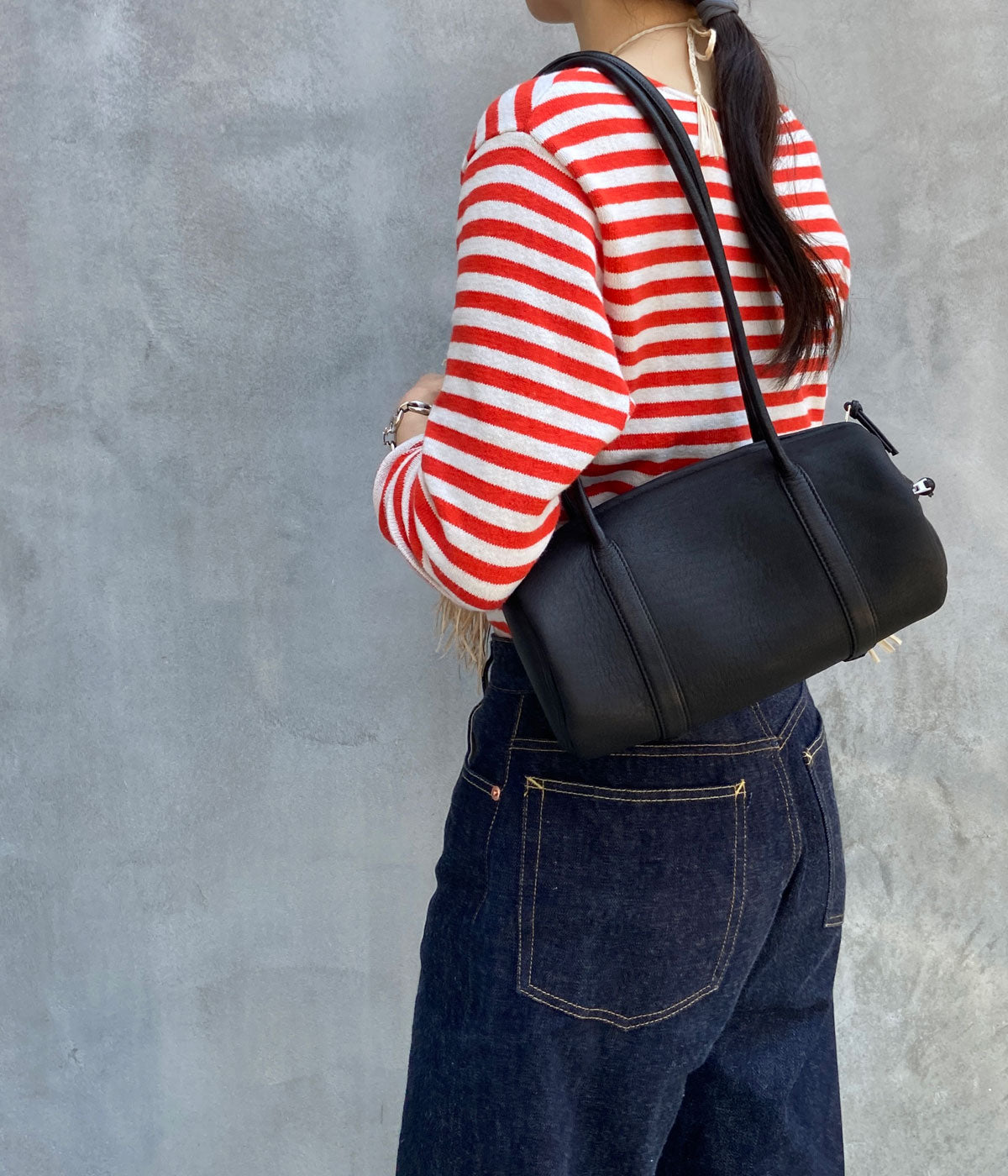 AetaからCYLINDER BOSTON LONG HANDLE(BLACK)が入荷しました。DEER LEATHER COLLECTIONでも人気の円柱ボストンバッグ。こちらはロングハンドルタイプ。しっとりとした革は使い込むごとに柔らかく、魅力が増していきます。コーディネートのポイントとしてもおすすめの形の可愛いバッグです。