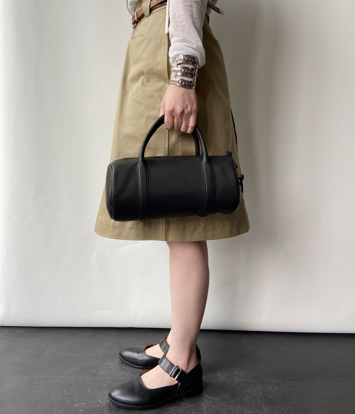 AetaからCYLINDER BOSTON(BLACK)が入荷しました。DEER LEATHER COLLECTIONでも人気の円柱ボストンバッグ。しっとりとした革は使い込むごとに柔らかく、魅力が増していきます。コーディネートのポイントとしてもおすすめの形の可愛いバッグです。
