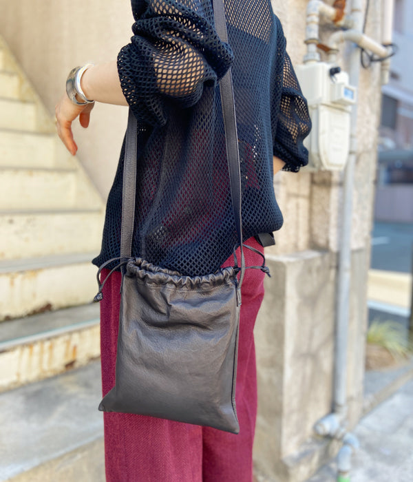 AetaからDOUBLE FACED DRAWSTRING SHOULDER Sが入荷しました。DEER LEATHER COLLECTIONの新作バッグ。マチが無く軽いバッグはスタイリッシュで持ち運びに便利。ドローコードを絞って形を変えるとまた違った印象に。ユニセックスでおすすめです。