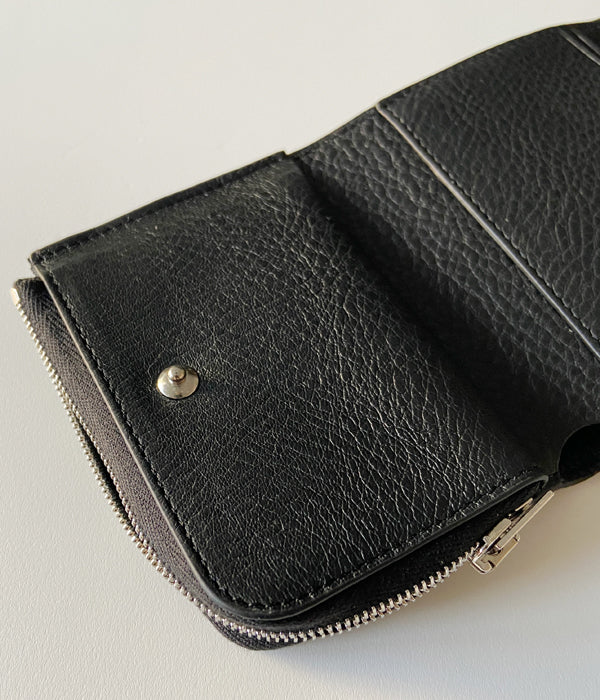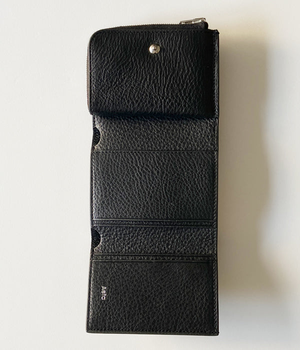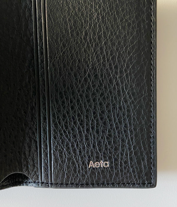 AetaからFOLDED WALLETが入荷しました。滑らかな牛革を使用した三つ折り財部。無駄な装飾を省き、手のひらサイズのシンプルでコンパクトな作りとなっています。L字ファスナーで開閉するコインケースも取り出しやすい。複数のカード入れ、お札を折らずに収納可能。幅広い年代の方におすすめの財布です。