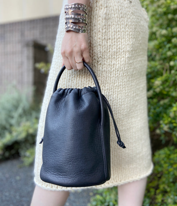 AetaからHANDLE POUCH S(BLACK)が入荷しました。DEER LEATHERはしっとりとした革は使い込むごとに柔らかく、魅力が増していきます。円筒のバッグは人気の形。今回はハンドルが付いたバージョンで登場です。必要最小限なものはもちろん、500mlのペットボトルも入るのが嬉しい。ちょっとそこまで、のお出かけにもおすすめです。
