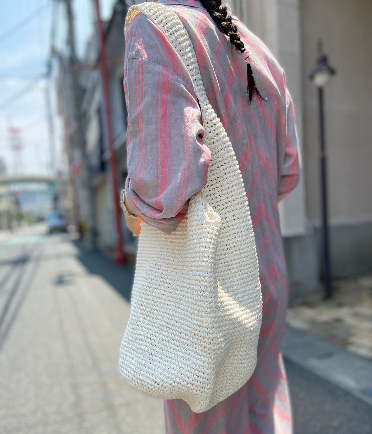 AetaからPAPER YARN SHOULDER L が入荷しました。PAPER YARN COLLECTIONからのニューモデル。しなやかさと強度を兼ね備えた素材が手持ち、肩がけどちらにもしっくりハマるアイテム。丁寧な編み地が高級感を演出。