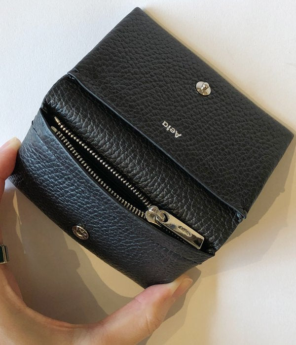 Aeta/PEBBLE GRAIN LEATHER MINI WALLET(BLACK)