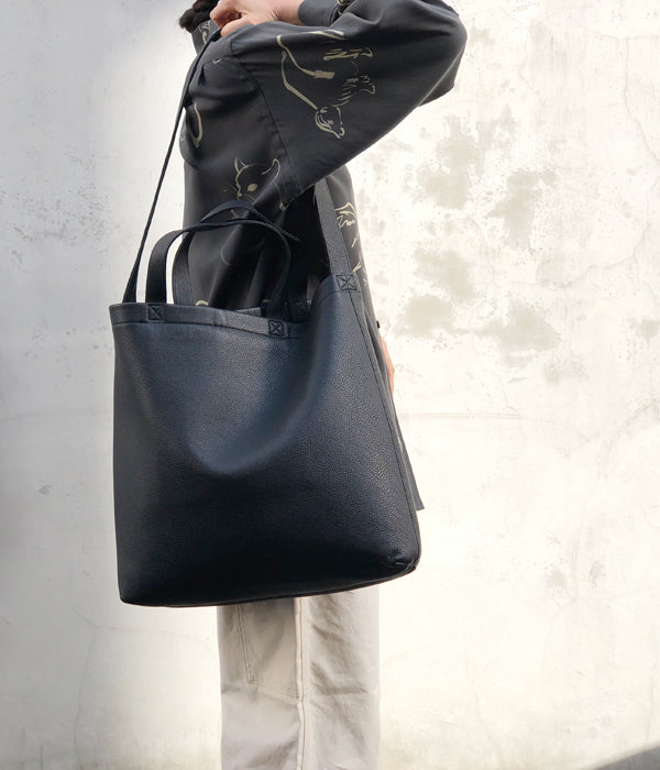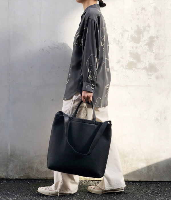 Aeta/PEBBLE GRAIN LEATHER SHOULDER TOTE M(BLACK)