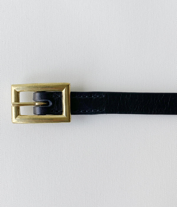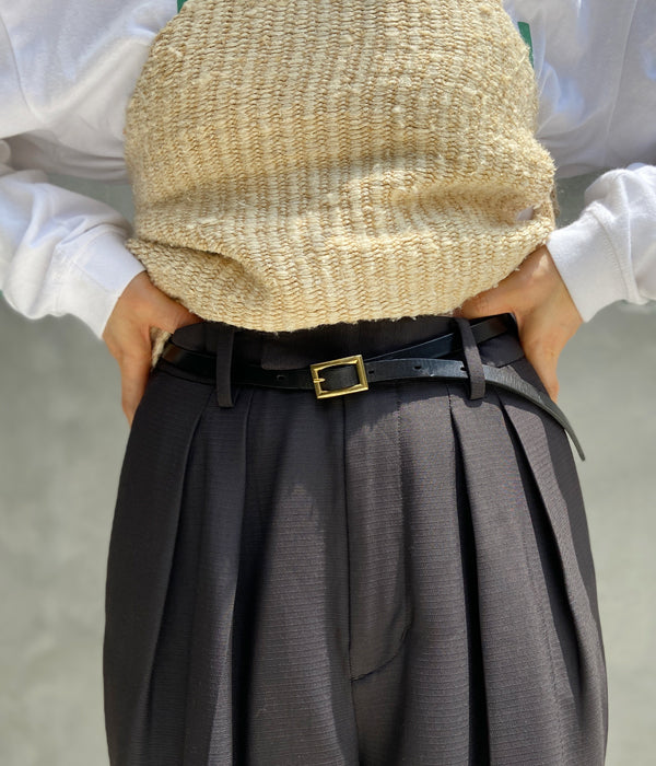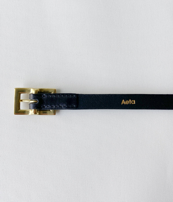 AetaからSQUARE BUCKLE BELT Sが入荷しました。滑らかでマットな質感が美しい牛革を使用したレザーベルト。小ぶりのスクエア型のバックルが目を惹くベルト。細めの幅とベルトを押さえる為のループがないミニマムなデザイン。ボトムスはもちろんニットやアウターなど幅広いコーディネートのアクセントとして活躍します。シーン、季節を選ばず、長く愛用できるシンプルなデザインです。内側にはブランドロゴがあしらわれています。