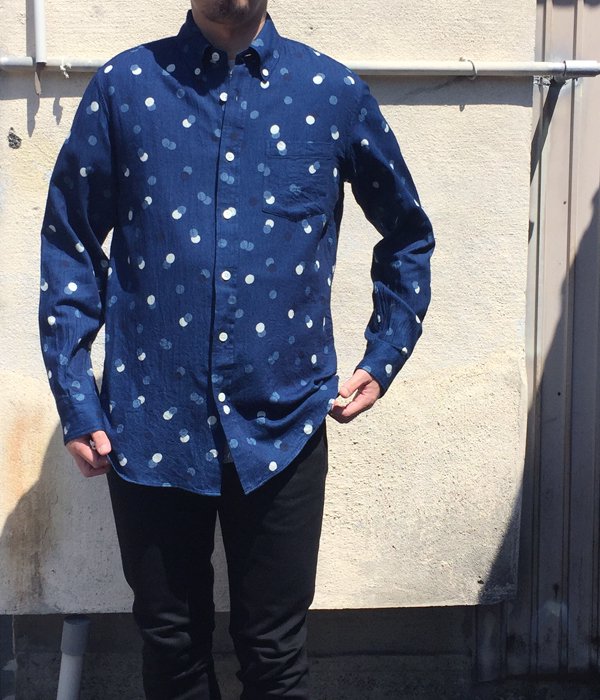 BLUE BLUE JAPAN/インディゴツイル カゲオイドット ボタンダウンシャツ (INDIGO)