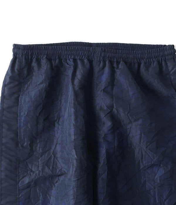 ナイロン素材に籠染めと呼ばれる技法で不均一な柄を表現したナイロンパンツ。グラデーションカラーにサイドラインが効いた一着。裏地にメッシュ素材を使用しアクティブな季節にばっちりの仕上がり。