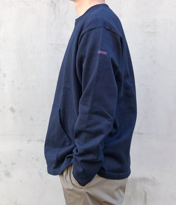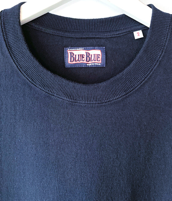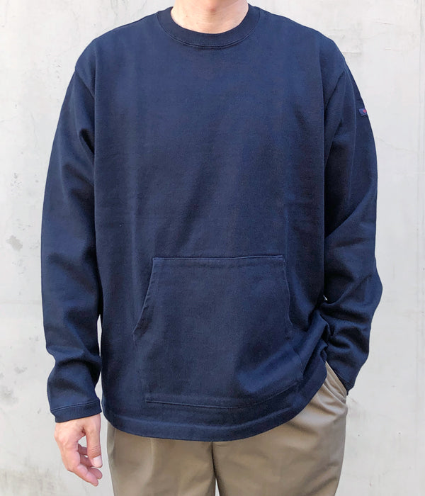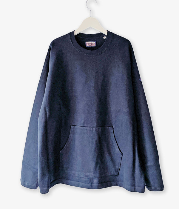 BLUE BLUEから、SUPER HEAVY TENJIKU BIG POCKET CN LSが入荷しました。厚手ながらも肌触りは優しい存在感のあるコットン素材を使用したクルーネックLS T-SHIRT。ゆったりとしたサイジングに、袖口に小振りなリブ、大きなマフポケットを備えたデザイン。左袖にBLUE BLUEのロゴ入りパッチをワンポイントでデザイン。