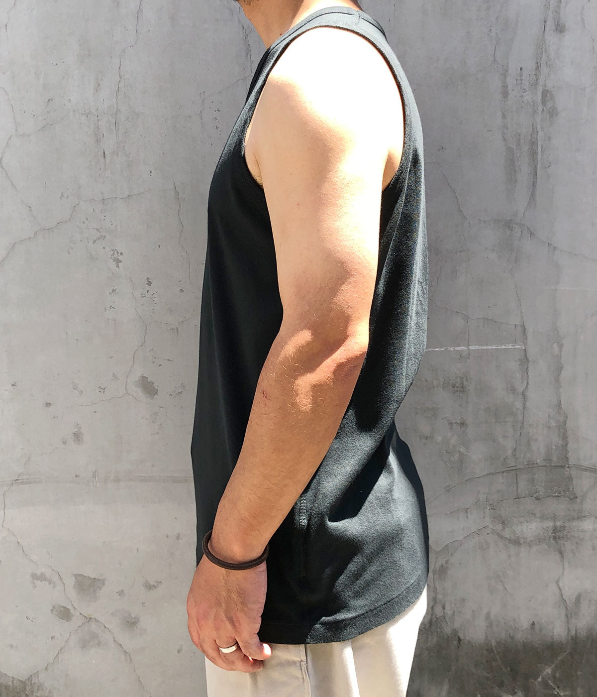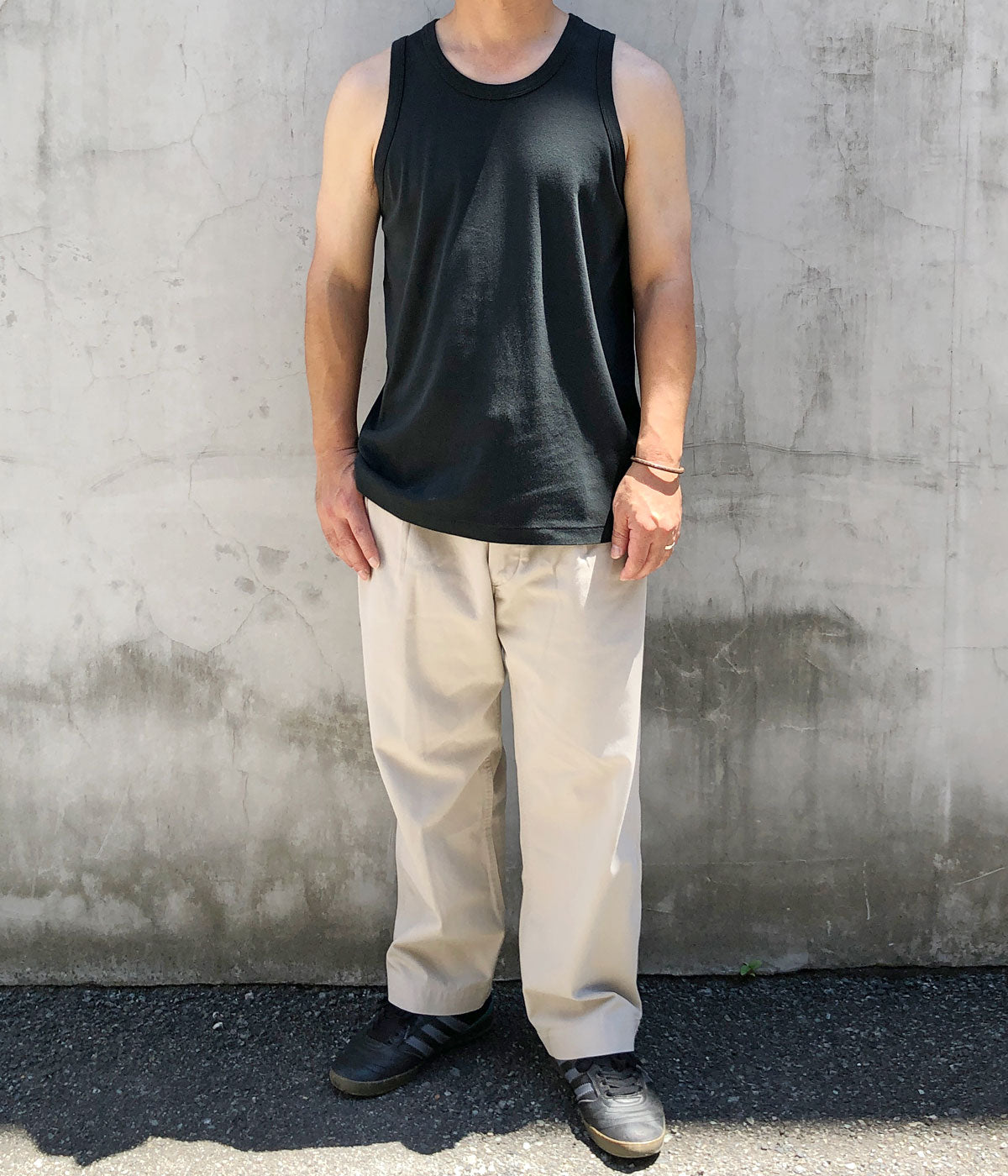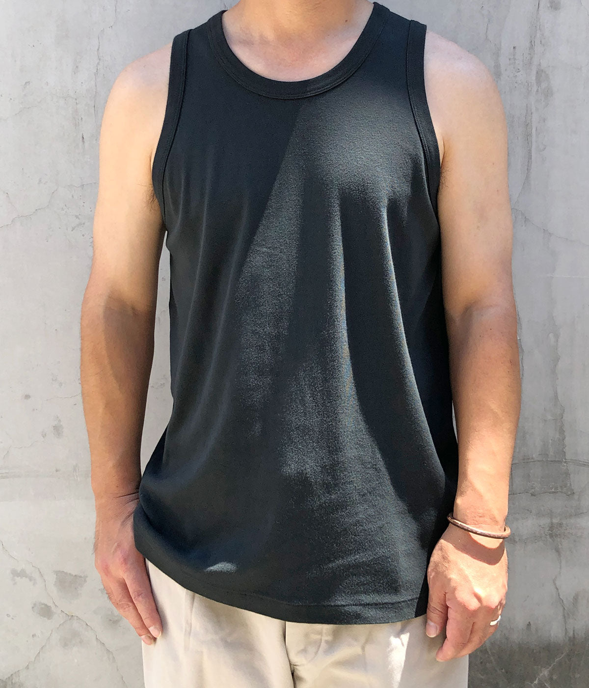 blurhms ROOTSTOCKから、CLASSIC RIB-FIT TANKTOPが入荷しました。硫化染め特有のアタリのある表情が美しいタンクトップ。少しカサつく心地よい風合いが特徴の、柔らかく程よい厚みの生地感による1着。イージーケアで着用できる日常に優しい仕上げのTシャツです。夏場のインナーに最適です。