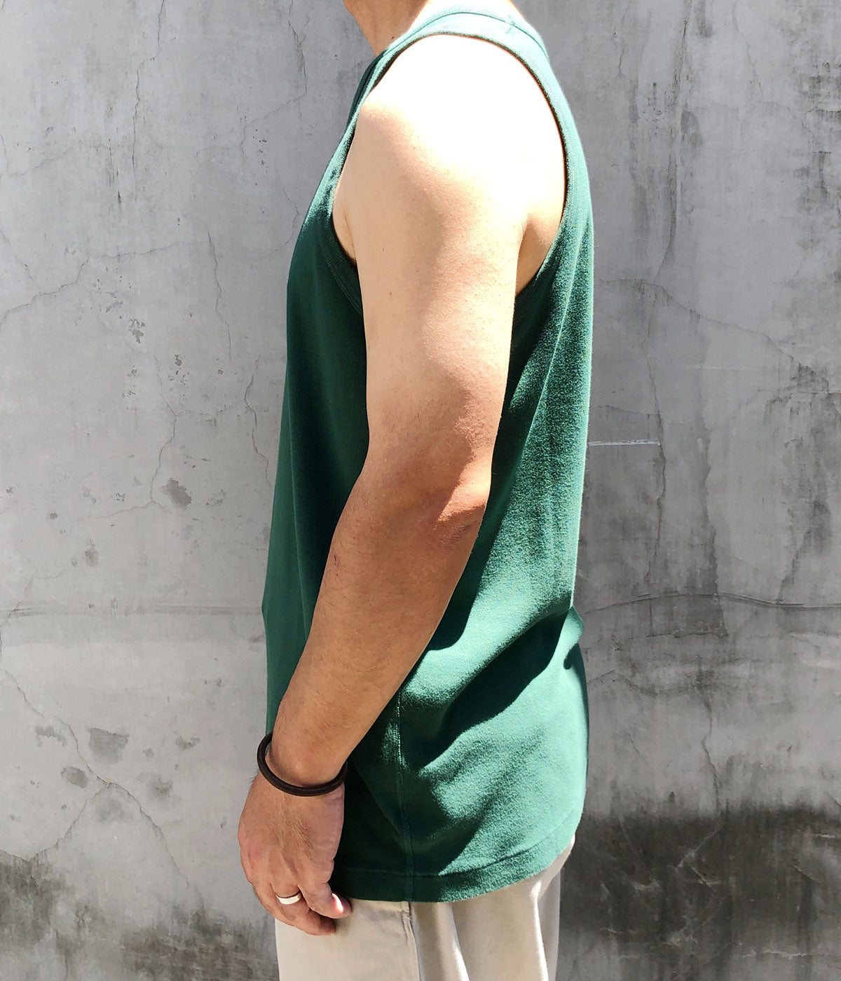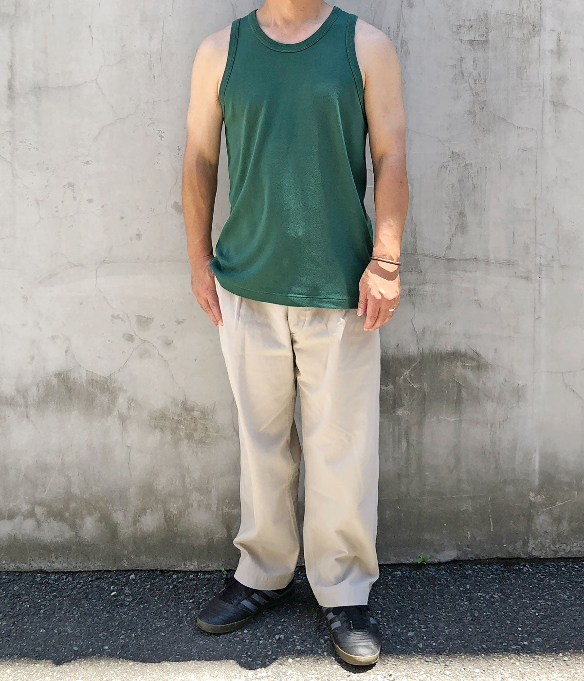 blurhms ROOTSTOCKから、CLASSIC RIB-FIT TANKTOPが入荷しました。硫化染め特有のアタリのある表情が美しいタンクトップ。少しカサつく心地よい風合いが特徴の、柔らかく程よい厚みの生地感による1着。イージーケアで着用できる日常に優しい仕上げのTシャツです。夏場のインナーに最適です。