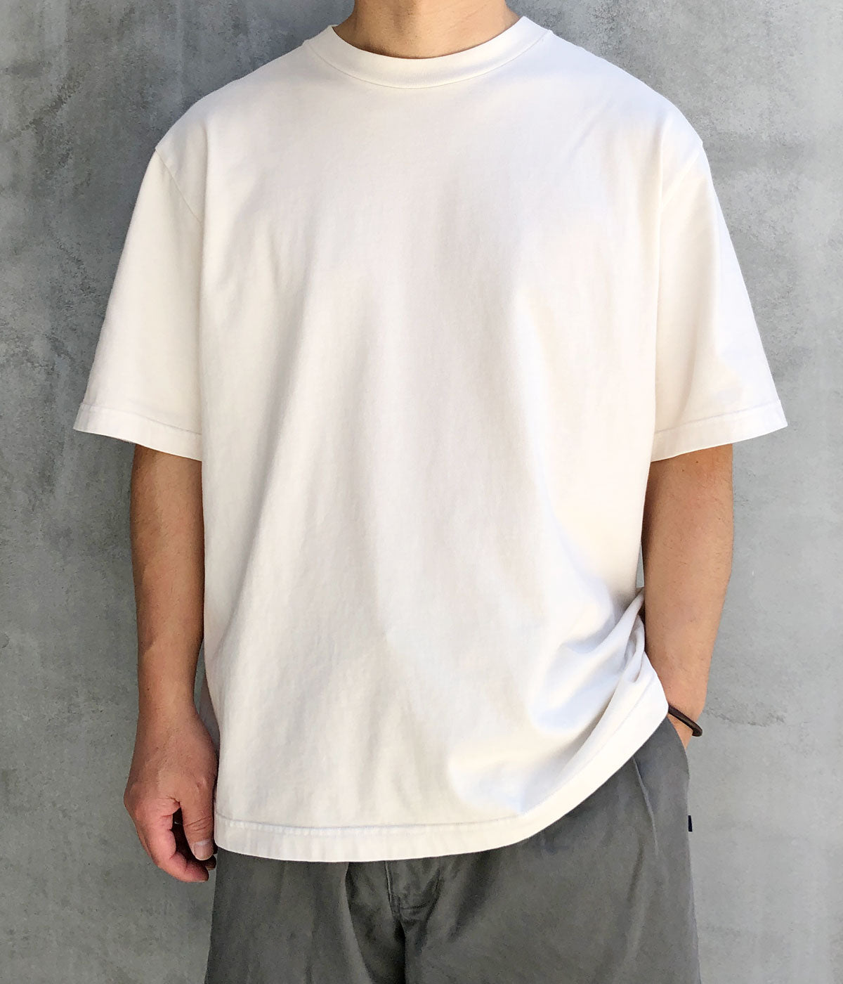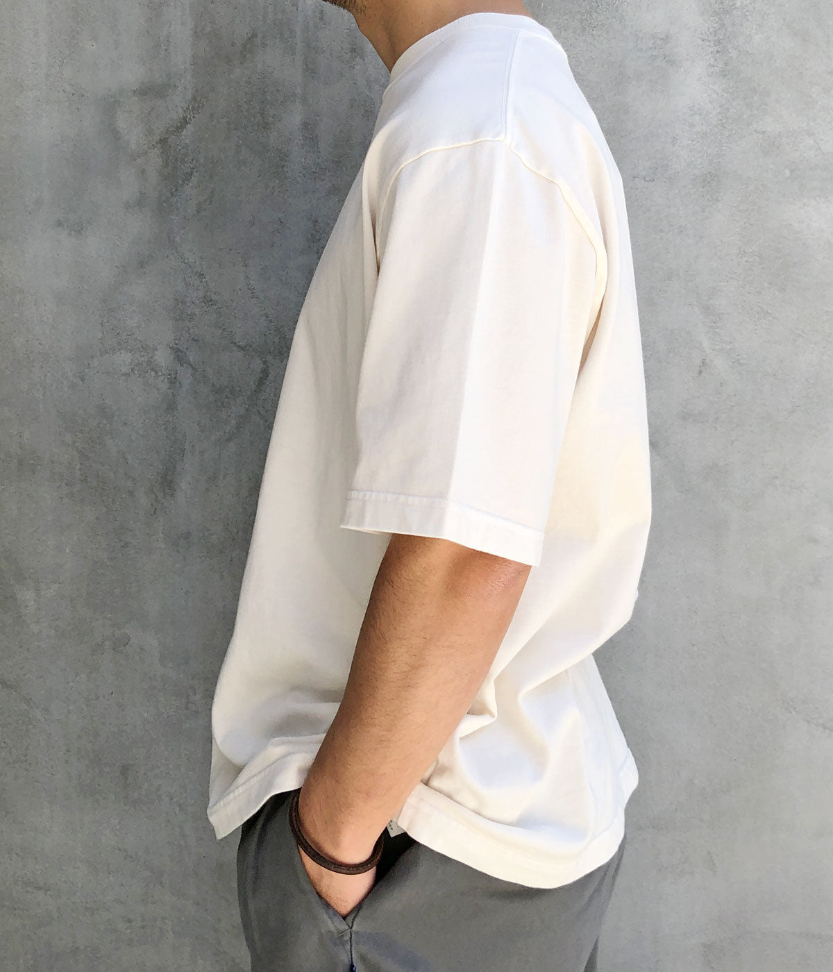 blurhms ROOTSTOCKから、CLASSIC S/S WIDEが入荷しました。硫化染め特有のアタリのある表情が美しい半袖Tシャツ。少しカサつく心地よい風合いが特徴の、柔らかく程よい厚みの生地感による1着。イージーケアで着用できる日常に優しい仕上げのTシャツです。ラフにガシガシ着てください!