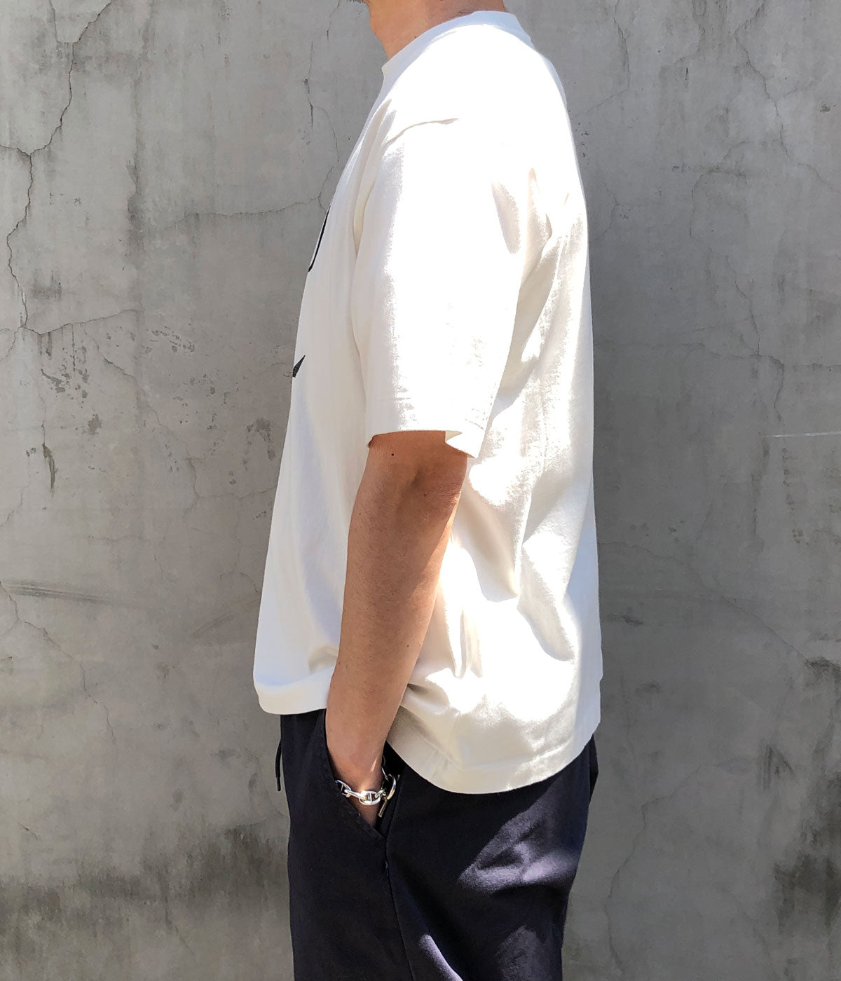 blurhms ROOTSTOCKから、COAL Print Tee WIDEが入荷しました。太番手の糸をハイゲージで編んだコットン天竺素材を使用したSS Tシャツ。プリントを施した後に製品洗いを繰り返した風合いのある表情と、ソフトな着心地が特徴。25SSより、ボディのサイズ感が変更されました。ご購入前に、最新のサイズスペックをご確認下さい。