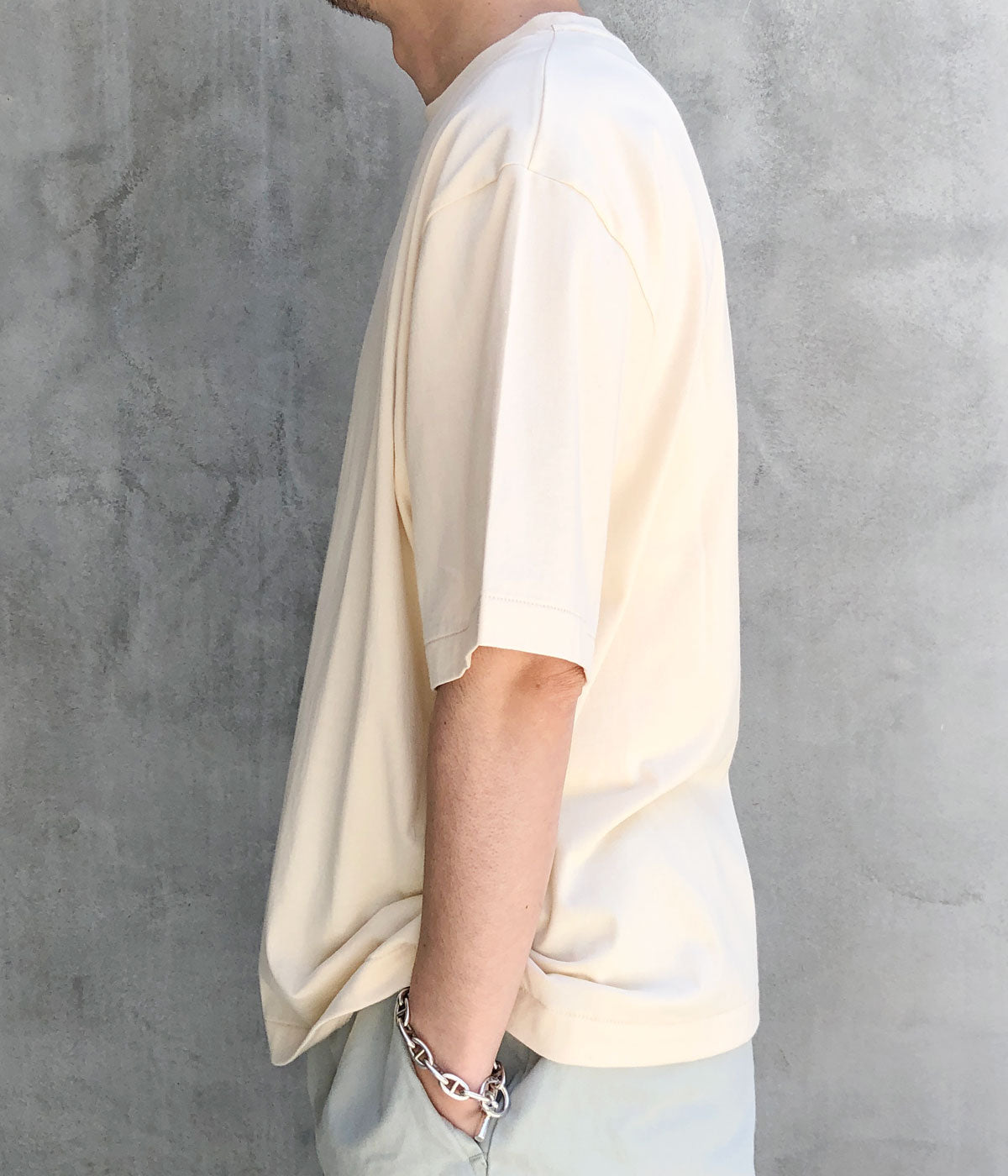 blurhms ROOTSTOCKから、SILK COTTON 20/80 S/S TEE WIDEが入荷しました。綿の宝石と呼ばれる超長綿に加え、贅沢にもシルクをブレンドした独特の滑らかな肌触りの生地を使用した半袖Tシャツです。ワイドシルエットに仕立て、素材由来の吸湿・放湿性に優れた極上の着心地の1着。