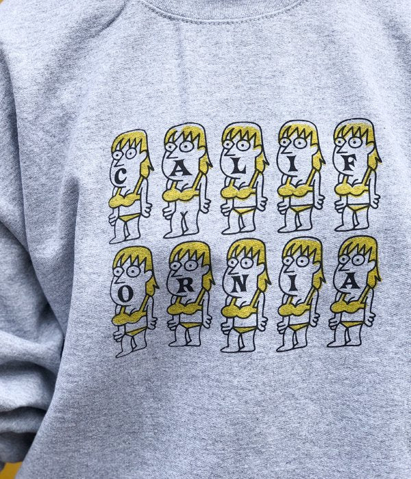 CALIFORNIA STOREからのBIKINI CALI SWEATが入荷しました。デザイナー渾身のエロネタが描かれた、オリジナルプリントによるスウェット。こちらはビキニギャルがプリントされています。
