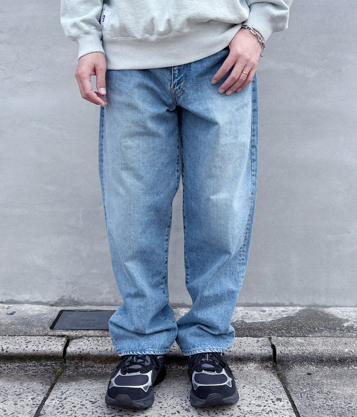 DESCENDANTから、1995 DENIM TROUSERS BAGGY HARD WASHが入荷しました。13.5ozのムラ糸コットンデニムを使用した1995型バギージーンズに、ストーンバイオ加工による着古した風合いを与えました。ゆったりとした腿周りからのテーパードが効いたワイドシルエット。ロゴ入りパッチを配したコインポケットを備え、飾りステッチのないシンプルなバックポケットが特徴。
