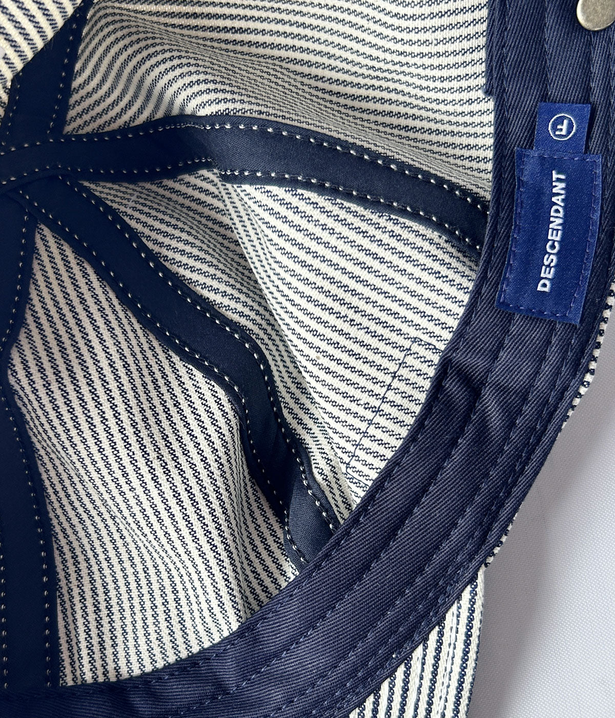 DESCENDANTから、A-3 HICKORY STRIPE POST O'ALLSが入荷しました。ポストオーバーオールズとのコラボレーションより、コットンヒッコリーストライプ製のエンジニアキャップ。サイドパネルにPOST O'ALLSとHORIZONのパッチで飾り付けました。シンセティックレザー製のアジャスター付き。