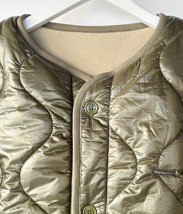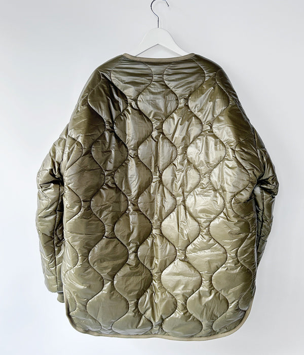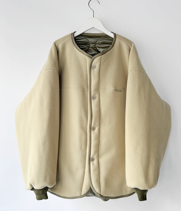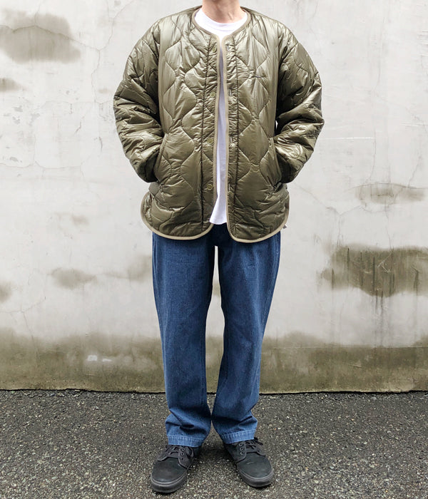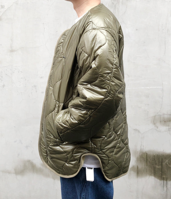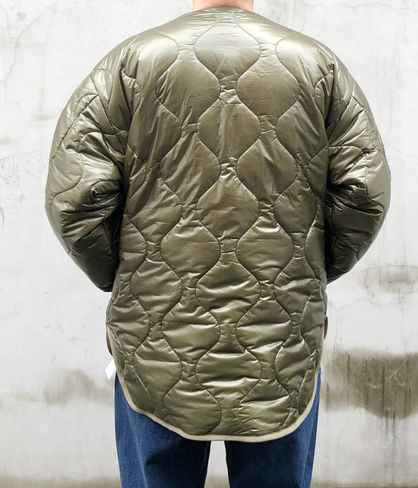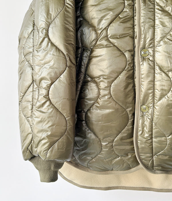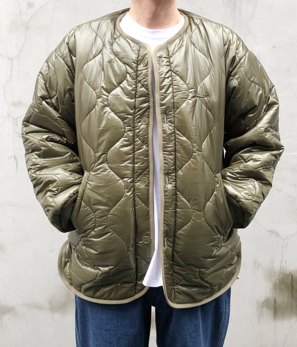 DESCENDANTから、ASMIL NYLON JACKET CLIMASHIELDが入荷しました。リップストップナイロンにひょうたん柄のキルティング加工を与えたノーカラージャケット。米軍のサプライヤーも務める、優れた耐久性と高い熱効率を誇るクライマシールドを内蔵し、裏地に厚手のフリースをあてがい保温性は抜群です。両面着用可能なリバーシブル仕様です!
