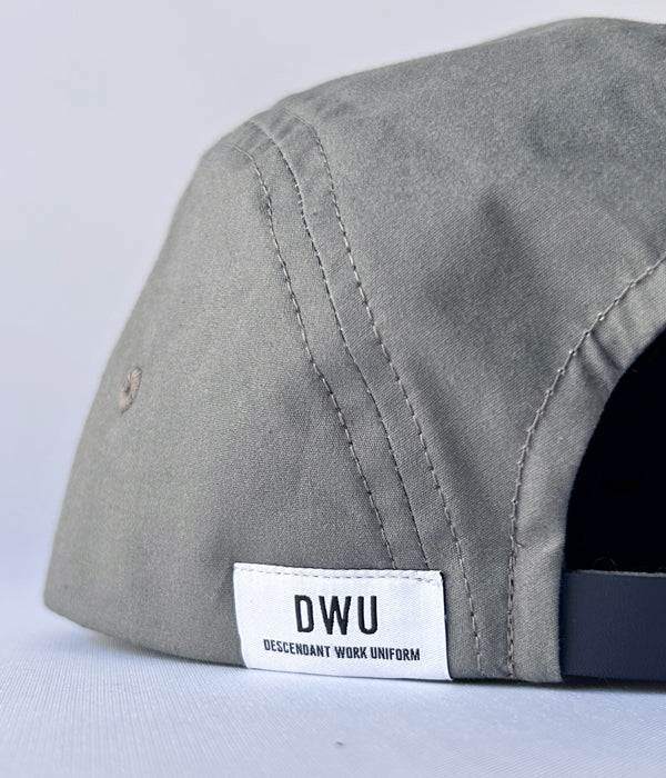 DESCENDANTから、BOX 5PANELが入荷しました。コットン製のミリタリーウェザー素材を使用した5パネルキャップ。フロントにシンセティックレザーによる型押しのBOX LOGOパッチ、背面にDWUのロゴパッチをワンポイント、サイズ調整アジャスター付き。