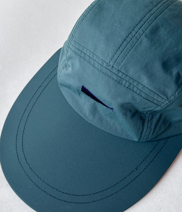 DESCENDANTから、CACHALOT 5PANELが入荷しました。ナイロンタッサー製の5パネルキャップ。フロントパネルにクジラの刺繍をあしらい、ロングバイザーで仕立てたサマー仕様。サイズ調整アジャスター付き。