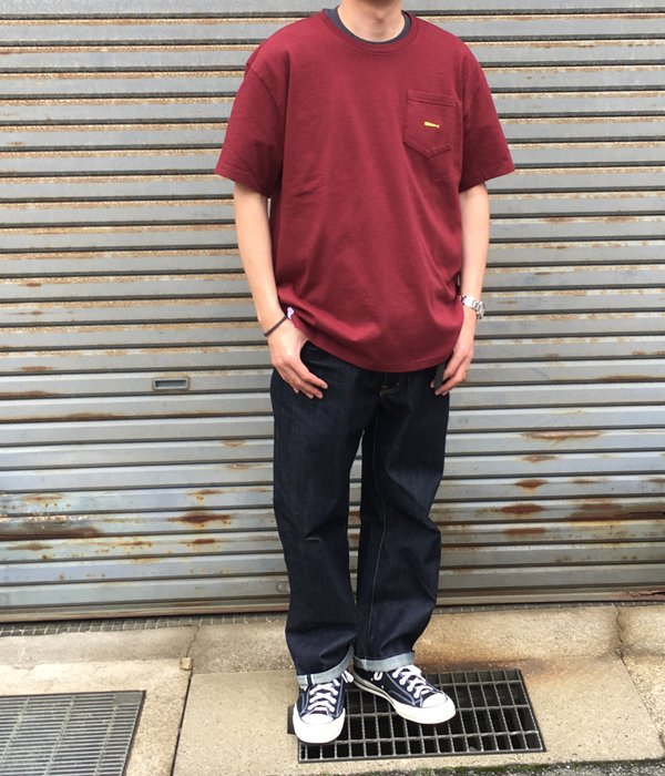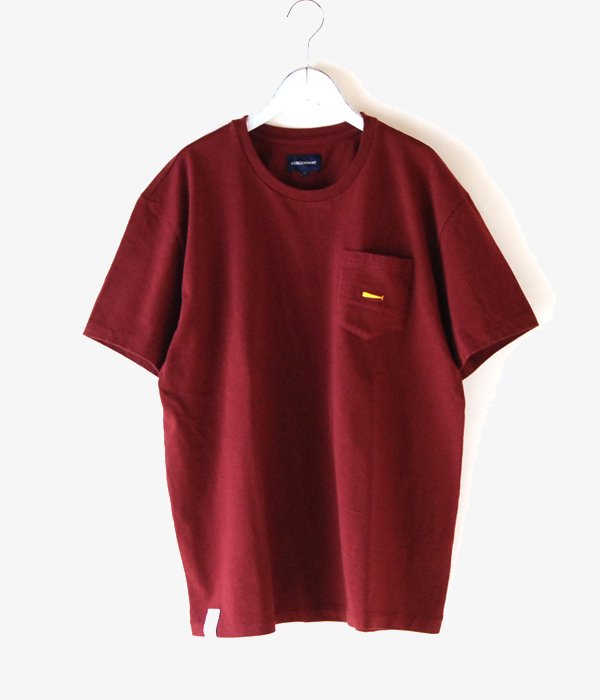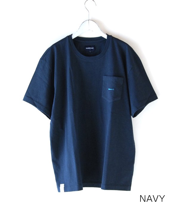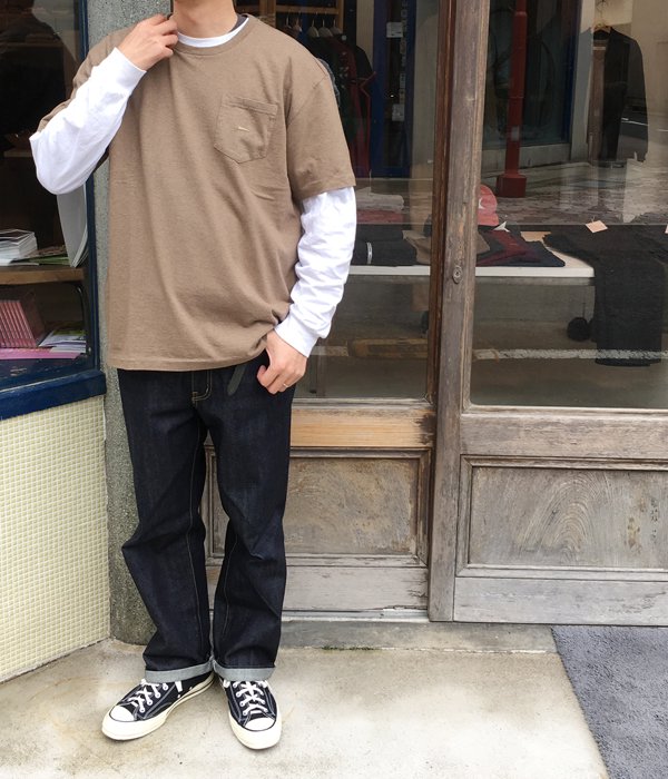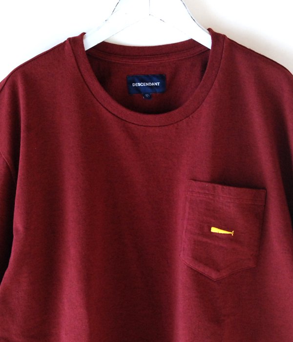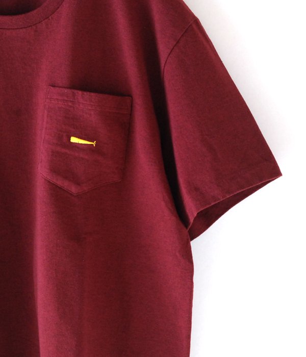 オーバーダイ加工を施したクジラ刺繍入りポケットTEE。染めならではの色合いが綺麗な一枚。