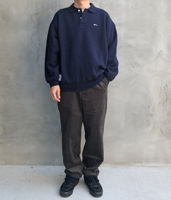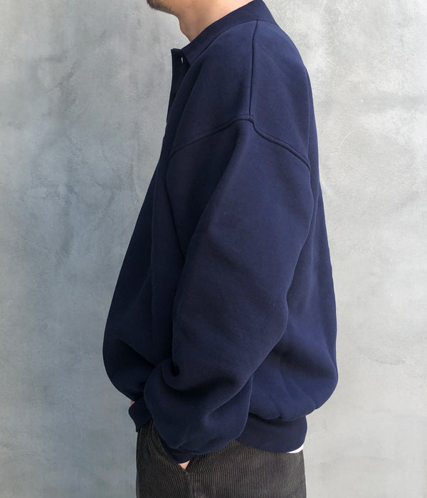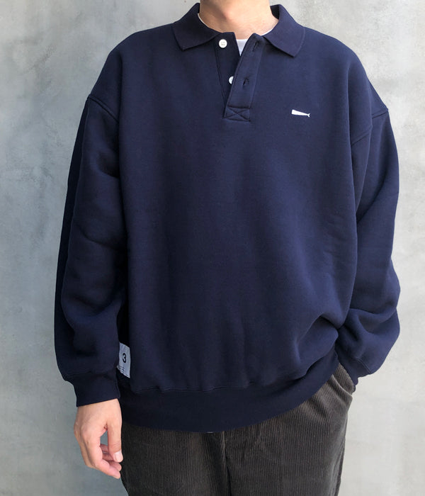 DESCENDANTからCACHALOT POLO JERJEYが入荷しました。吊り編み機仕立てによるふっくらとした質感の裏起毛コットンを使用したスウェットシャツ。襟周りが2つボタンのポロ襟仕様の新しいデザインです。ゆったりとした身幅に仕立て、左胸のクジラの刺繍がワンポイント。