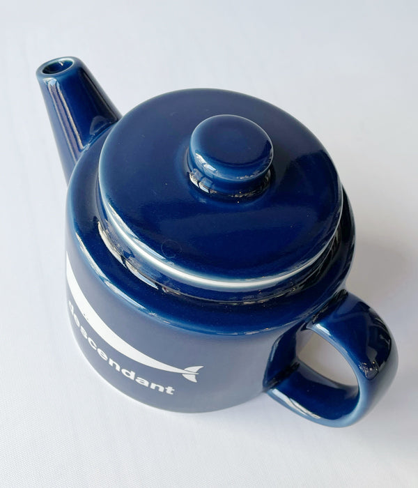 DESCENDANTから、CACHALOT POT COMMONが入荷しました。テーブルウェアブランドCOMMON製のティーポットは、陶磁器の本場波佐見町産による確かな品質。ブランドアイコンのマッコウクジラとDESCENDANTロゴをあしらったデザイン。