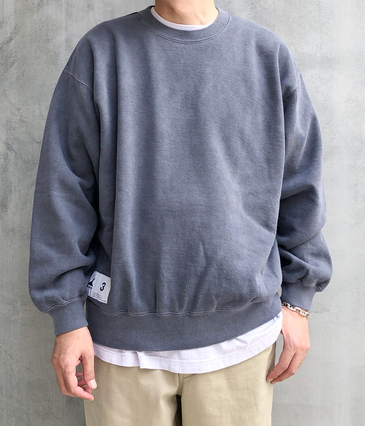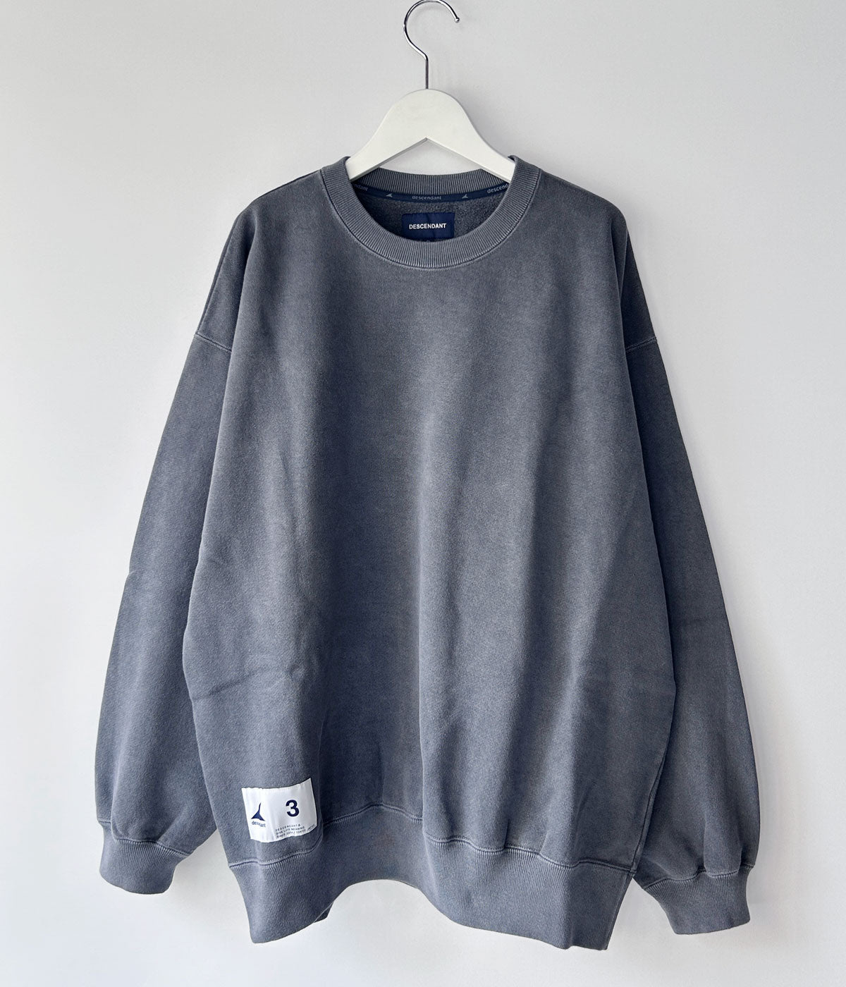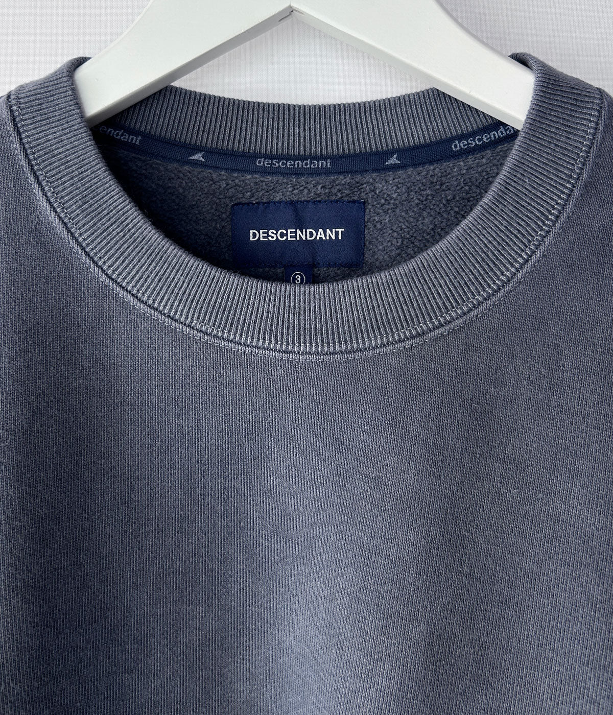 DESCENDANT/CETUS CREW NECK PIGMENT DYE (NAVY)
