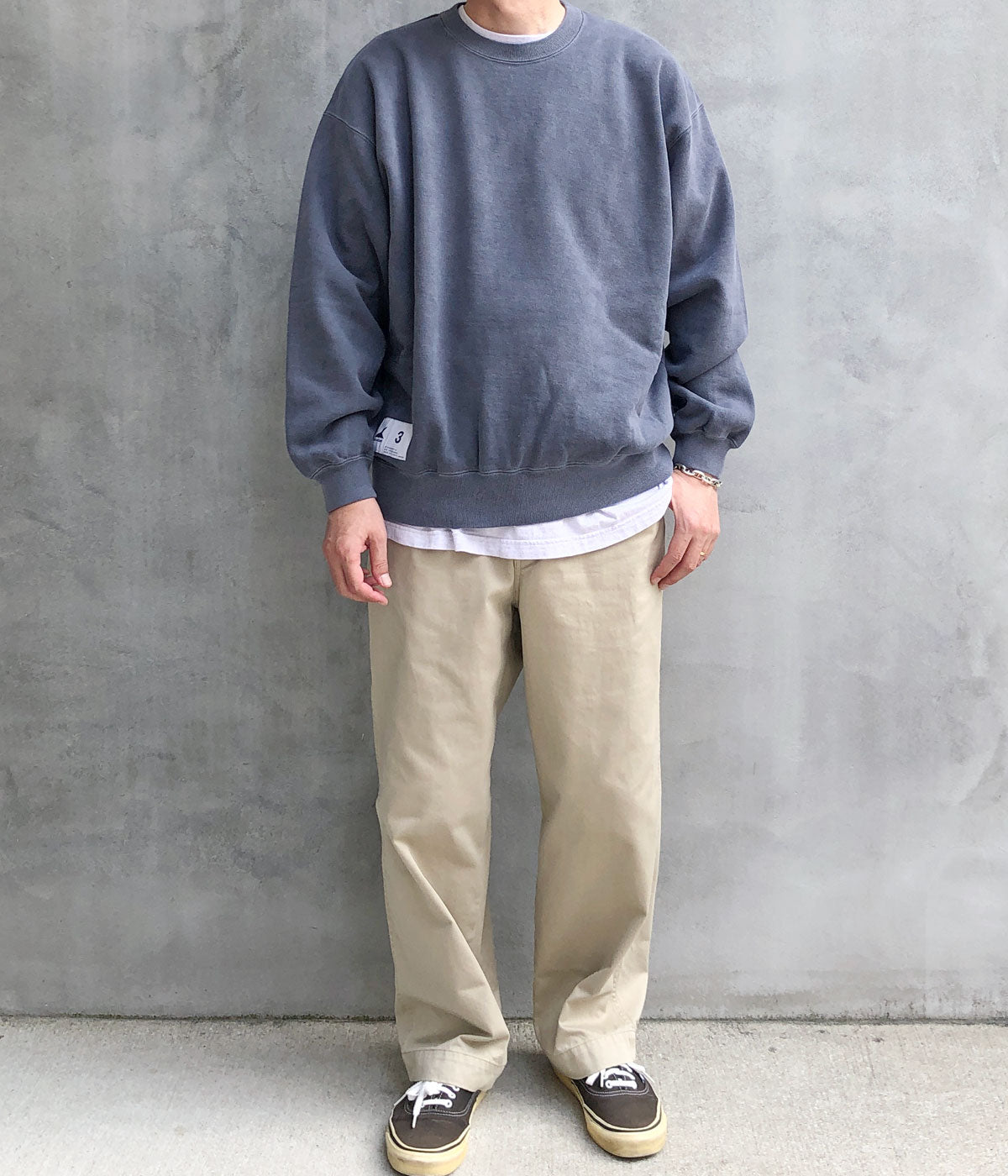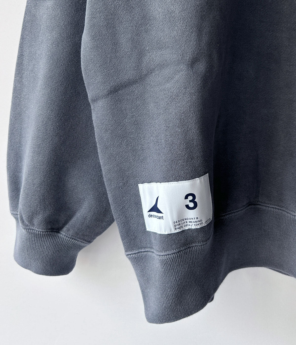 DESCENDANTから、CETUS CREW NECK PIGMENT DYEが入荷しました。厚手のコットン裏毛を使用したクルーネックスウェットシャツ。ピグメントダイ加工でくすんだ褪せた風合いに仕上げました。背面に斜め向きに大きく位置するCETUSのグラフィックがインパクトを与えます。
