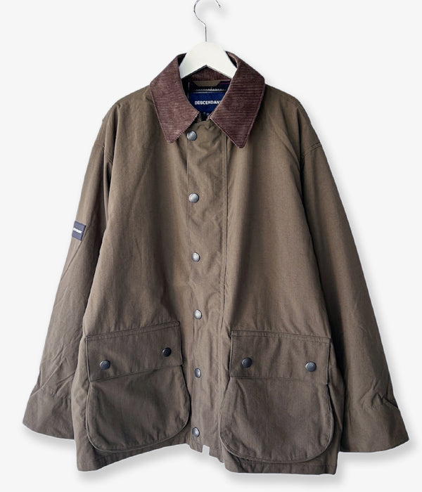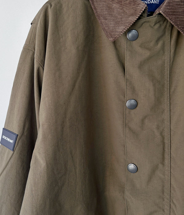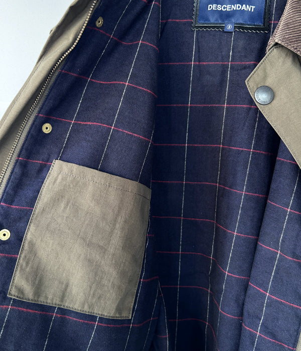 DESCENDANTから、GAME NYLON JACKETが入荷しました。コットンのような質感のナイロンオックス素材を使用したフィールドジャケット。襟をコットン製のコーデュロイ生地に切り替え、チンストラップを設けたデザイン。フラップ付きの大きなポケット、ショルダー周りのアクションプリーツ、袖の内側に設けたリブ等、機能的な作り。チェック裏地に内ポケット付き。