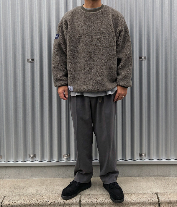 DESCENDANTから、HORIZON FLEECE CREW NECKが入荷しました。ボアフリースを使用したクルーネック仕立てのフリースシャツ。HORIZONの刺繍をワンポイントでデザインしました。ゆったりとした身幅に仕立て、裾周りはパイピングゴムによる適度な絞りを与えたディティール。