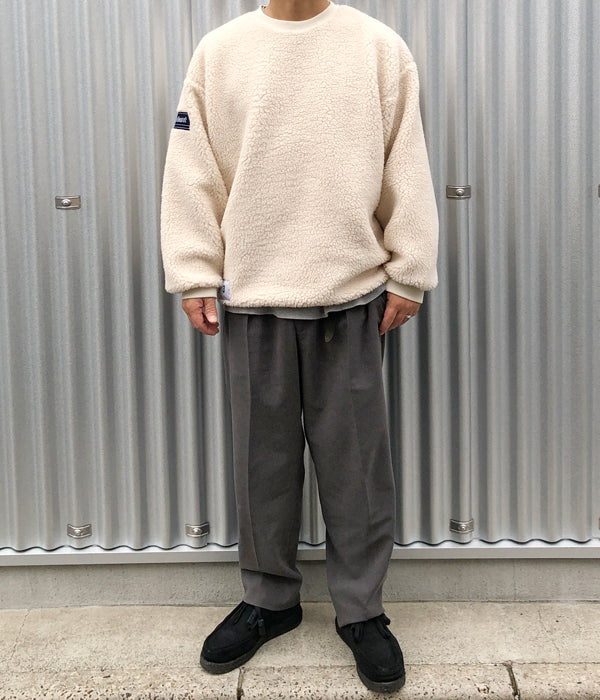 DESCENDANTから、HORIZON FLEECE CREW NECKが入荷しました。ボアフリースを使用したクルーネック仕立てのフリースシャツ。HORIZONの刺繍をワンポイントでデザインしました。ゆったりとした身幅に仕立て、裾周りはパイピングゴムによる適度な絞りを与えたディティール。