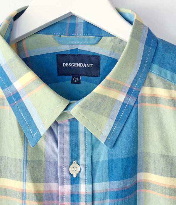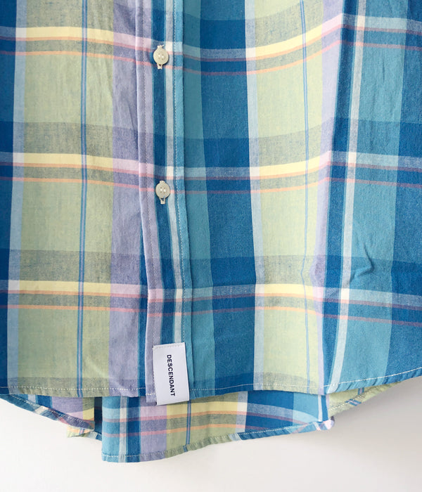 DESCENDANTから、HYANNIS SS SHIRTが入荷しました。コットン製のマドラスチェック柄による半袖シャツ。レギュラーカラーに身幅の広いシルエットに仕立て、クジラの刺繍入りのバストポケットがワンポイント。