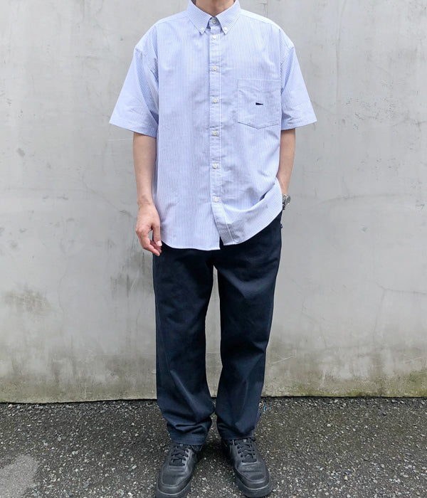 DESCENDANTから、KENNEDY’S OX STRIPE SS SHIRTが入荷しました。アメリカントラッドの王道カラーリングによるストライプ柄半袖シャツ。ボタンダウンのデザイン、バストポケットにクジラの刺繍をワンポイントであしらったゆったりとしたサイジングの1着。