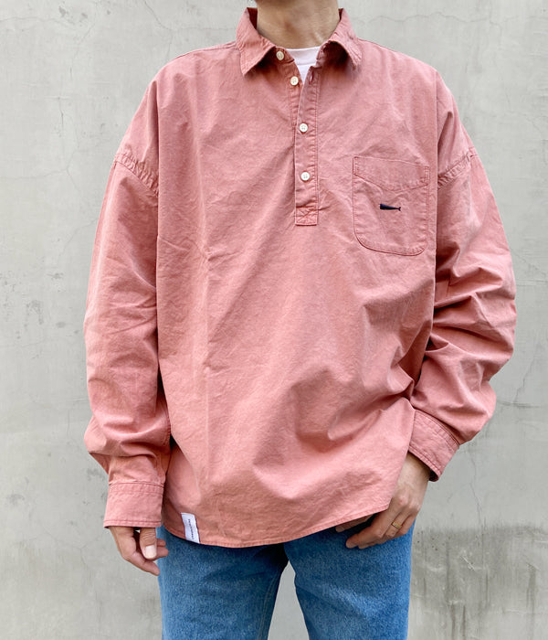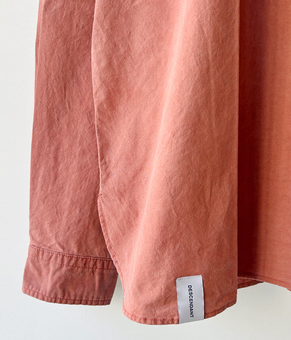 DESCENDANTから、KEYS LS SHIRTが入荷しました。ピグメントダイ加工による淡い色合いがポイントのコットン製レギュラーカラーP/Oシャツ。ラウンドカットの裾周りに深めのスリットを施し、バストポケットのクジラの刺繍がワンポイント。肩を落としたゆったりとしたシルエット。