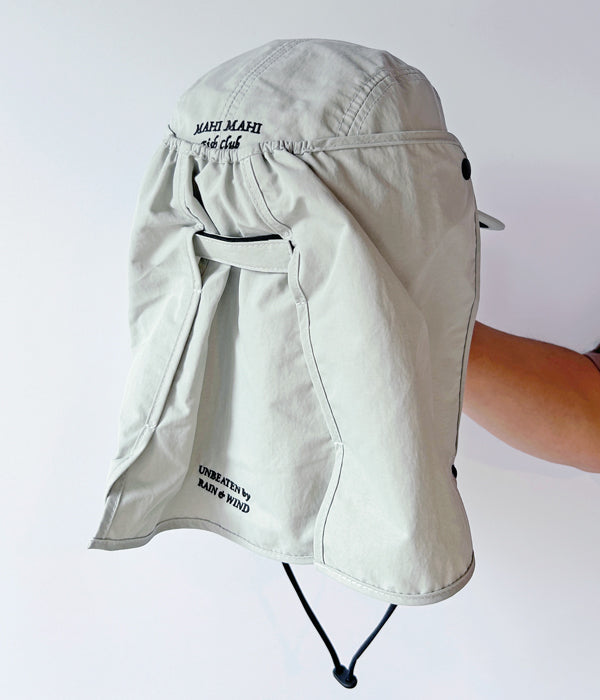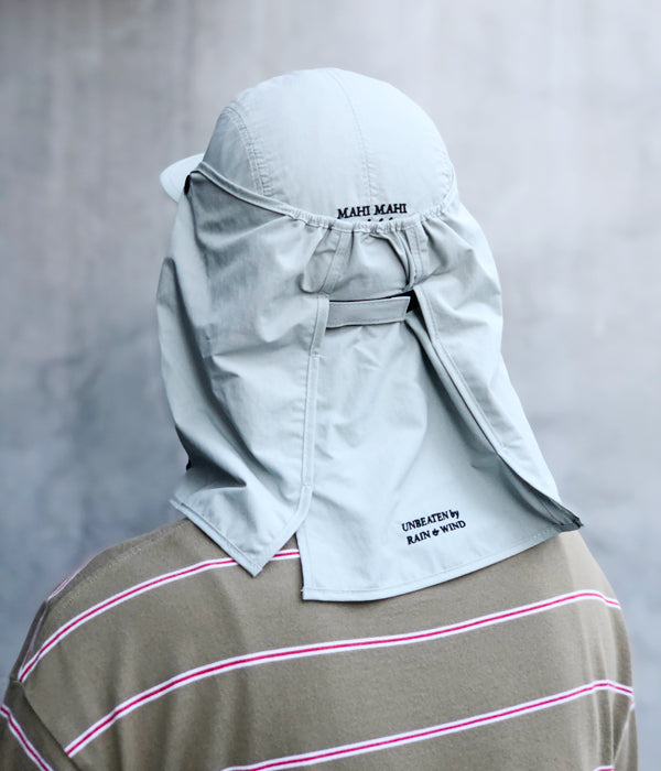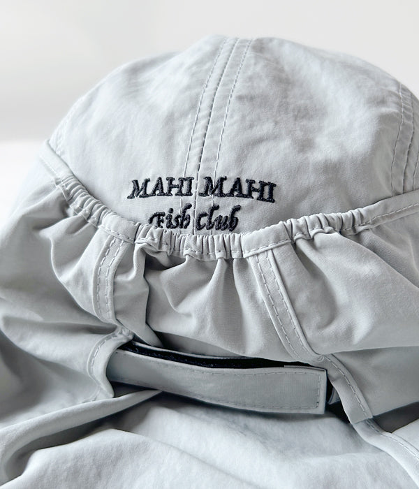 DESCENDANTから、MAHI MAHI 5PANELが入荷しました。日差しを避けるロングバイザーと、首元を保護する脱着可能なサンシェードを備えた5パネルキャップ。正面にMAHI MAHI LOGO、背面に架空のフィッシングクラブのロゴをそれぞれ刺繍でデザインしました。サンシェードは取り外せるので不要な時は取り外して着用できる優れもの!
