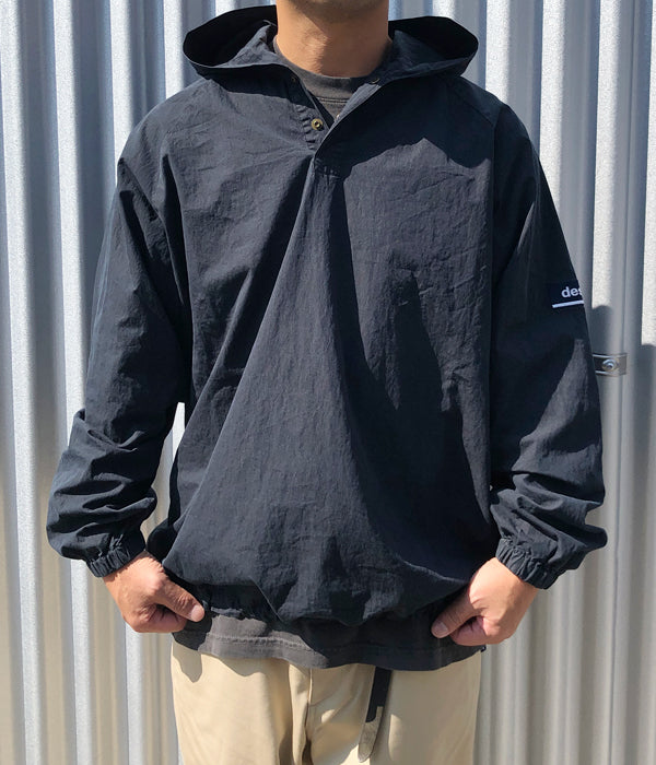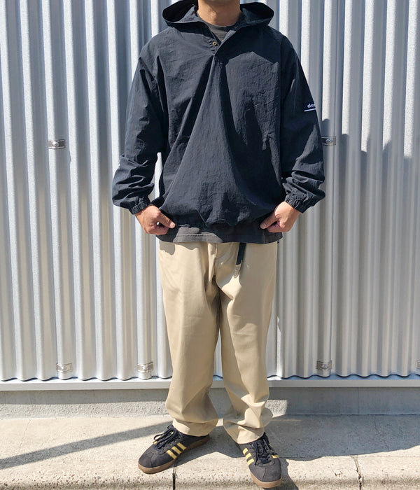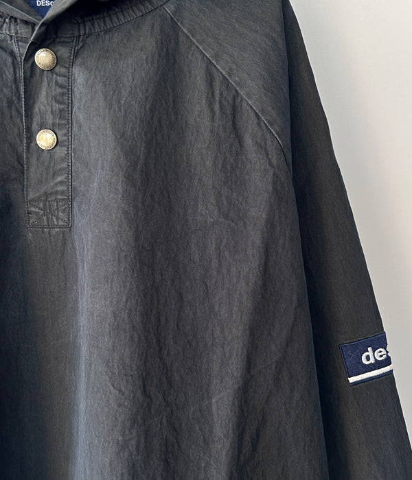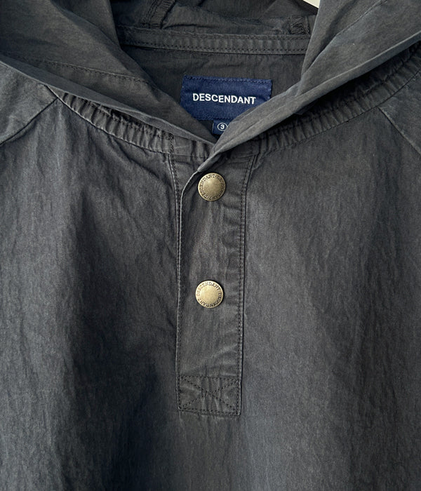 DESCENDANTから、MOLE HOODED LS SHIRTが入荷しました。撥水性のあるコットン×ナイロン素材を使用したフード付きアノラックシャツ。2か所のスナップボタンによるプルオーバー仕立て、裾周りに絞りを調整できるアジャスターコードを内蔵。両腕のアイコニックな刺繍がポイントです。