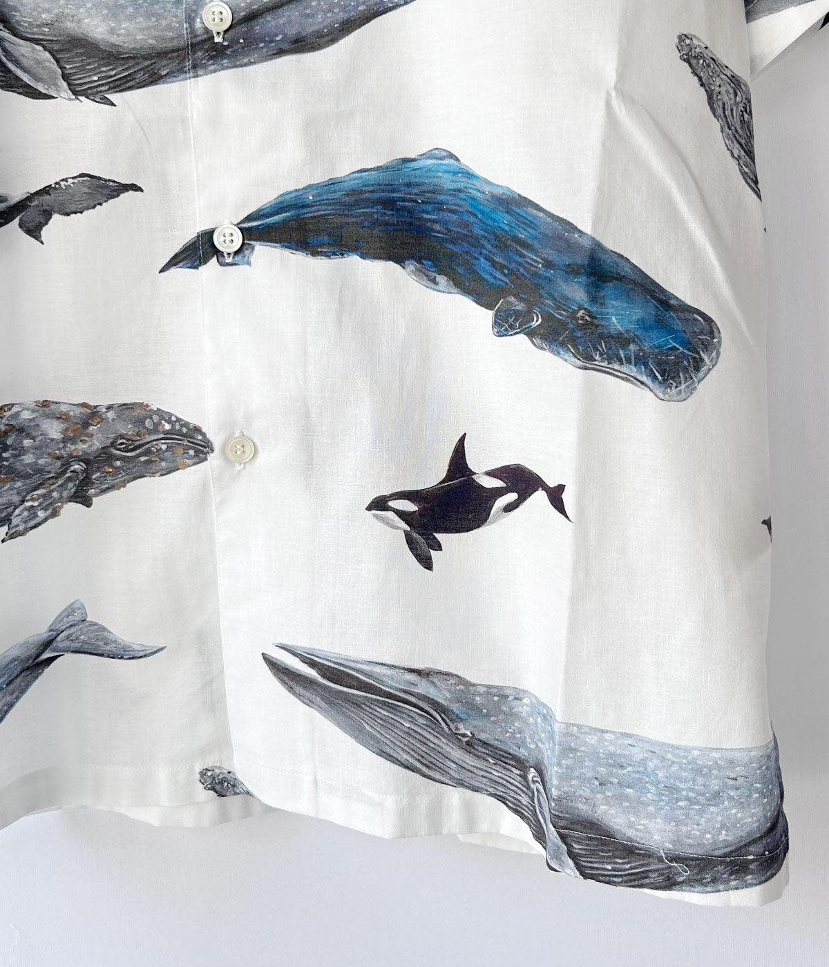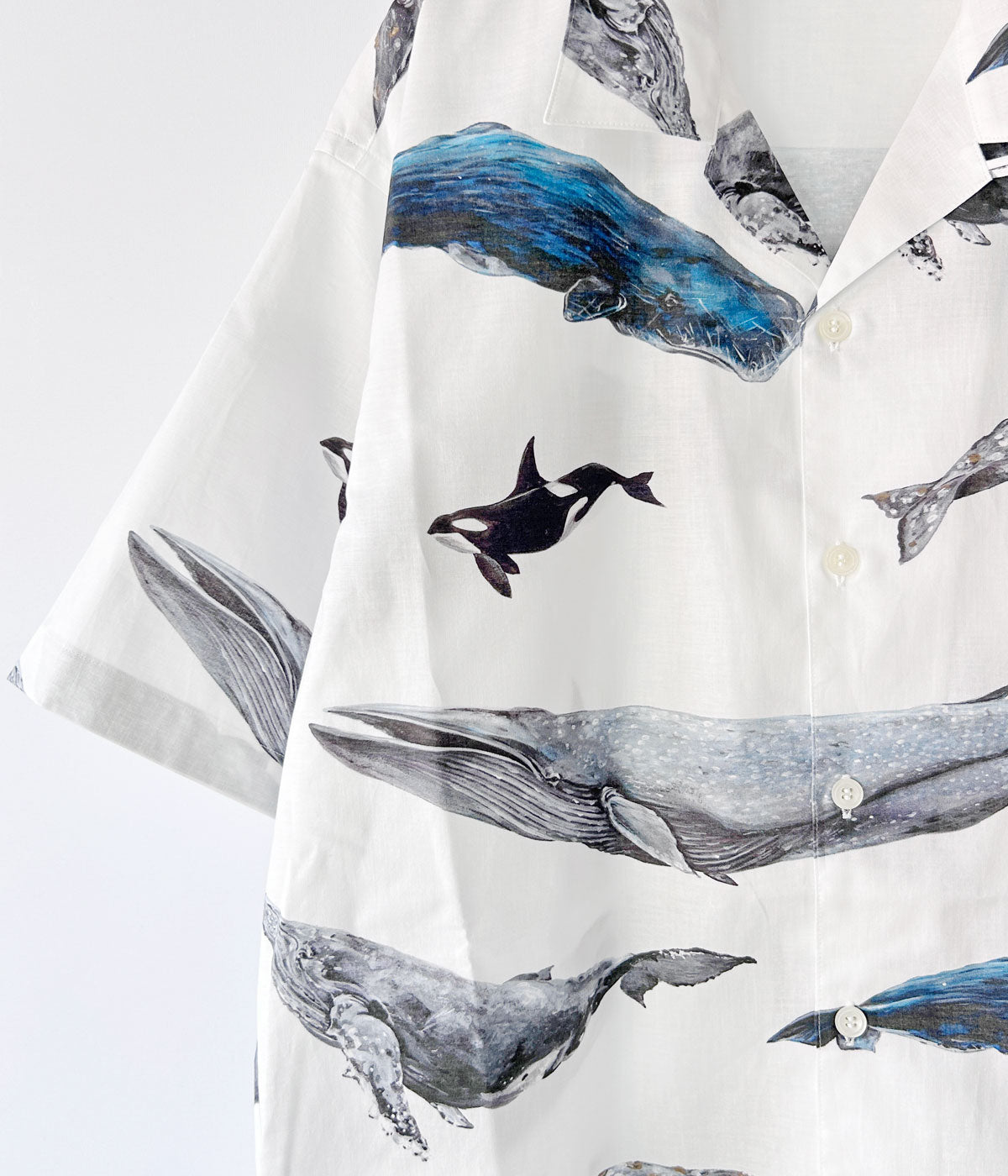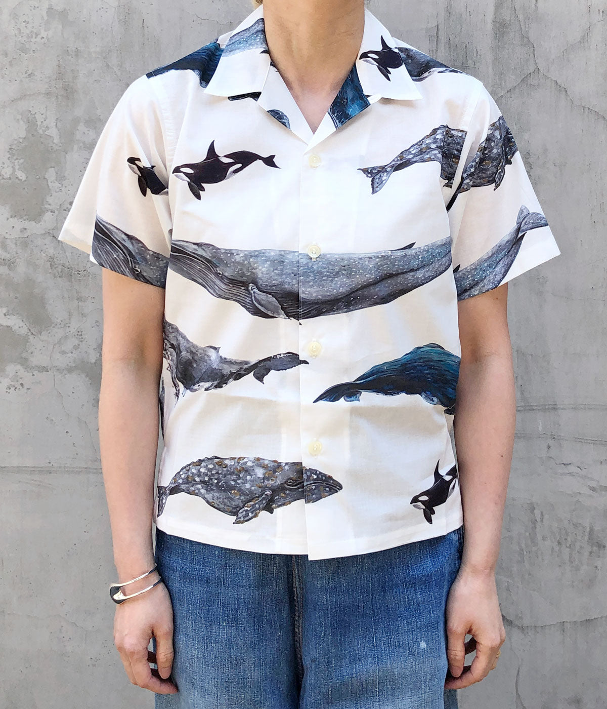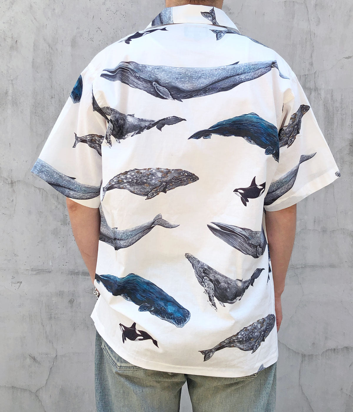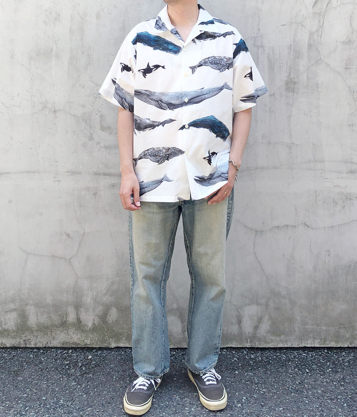 DESCENDANTから、SEAFARERS TEXTILE SS SHIRTが入荷しました。マッコウクジラや、シロナガスクジラ等の5種類のクジラをプリントした平織りコットン製のオープンカラーシャツ。裾にスリットが入り、アームホール広めのゆったりとしたシルエット。DCDTらしいダイナミックなデザインの1着です。