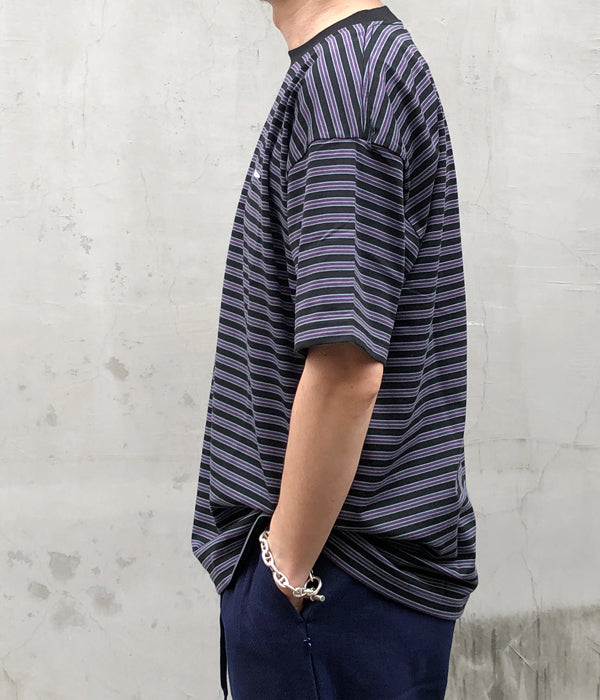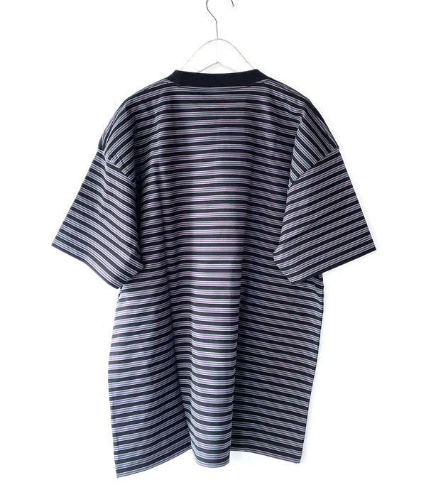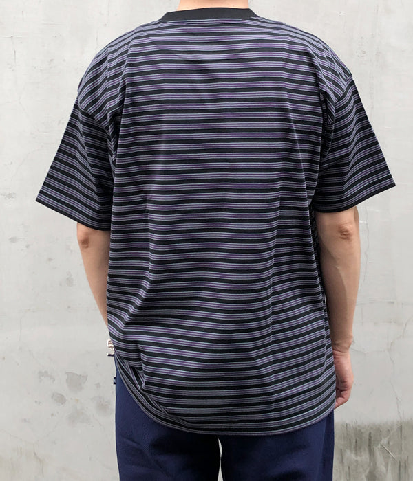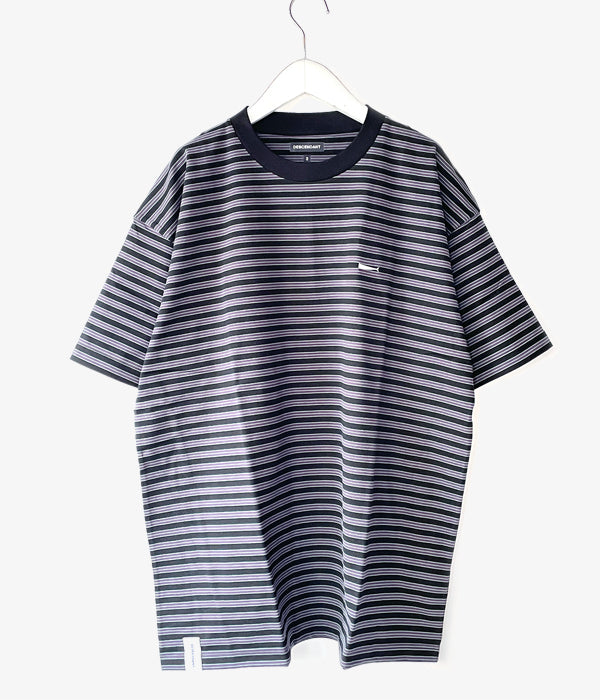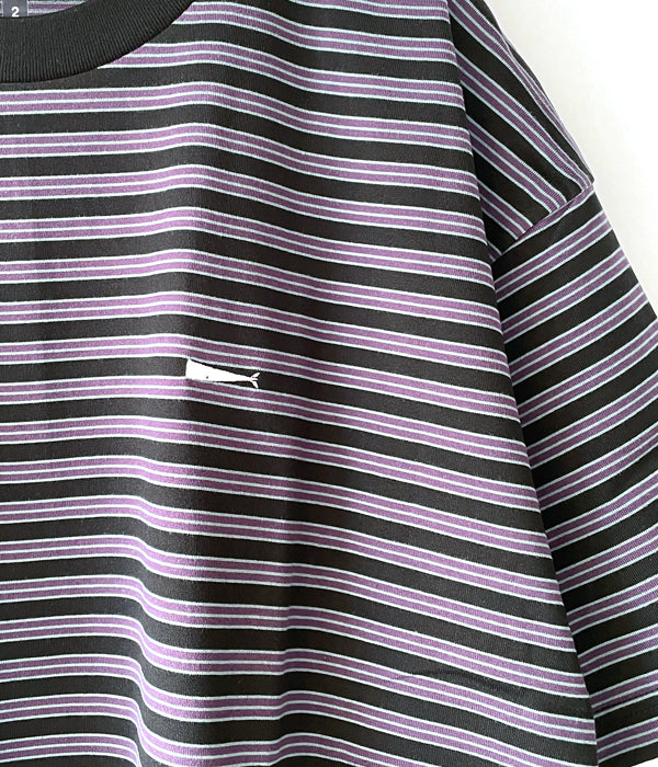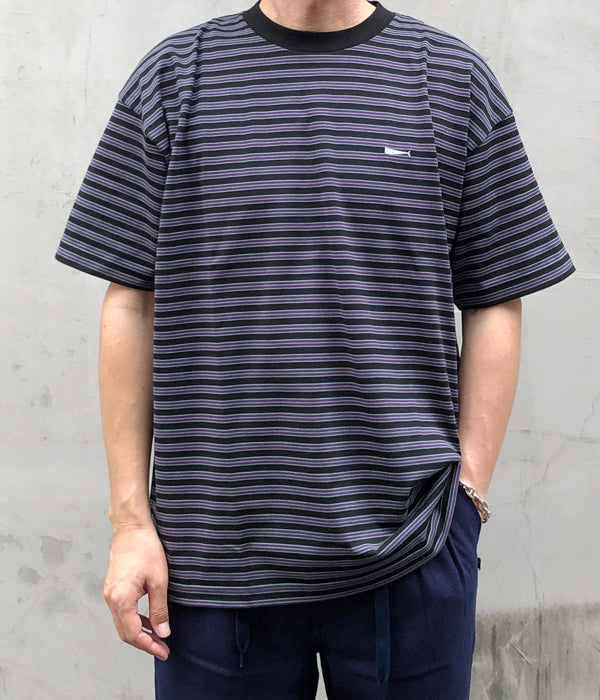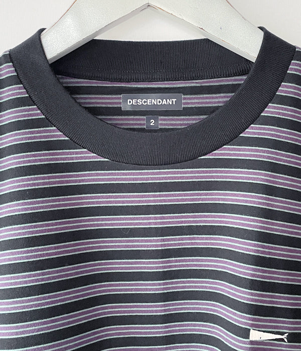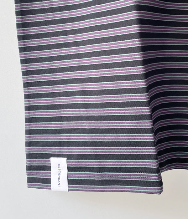 DESCENDANTから、SHENANIGANS BORDER SSが入荷しました。細かいピッチのマルチボーダー柄のコットンジャージー製Tシャツ。左胸のCACHALOT刺繍がワンポイント。リブカラーを切り替えたデザイン。