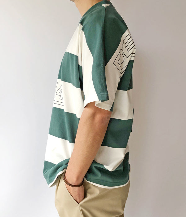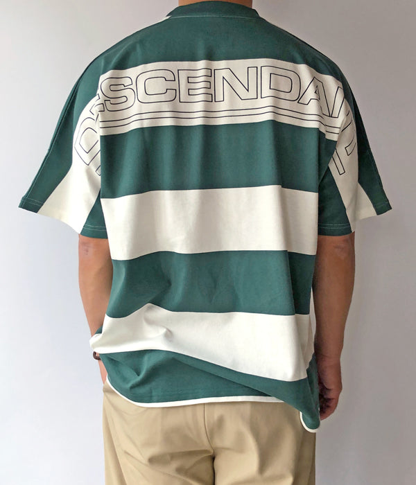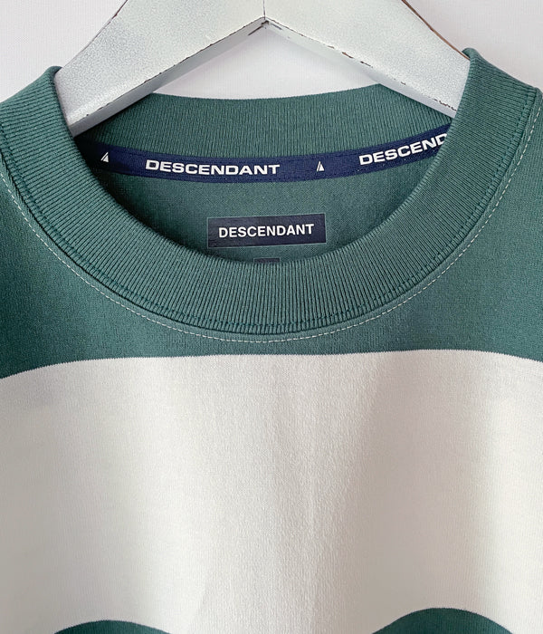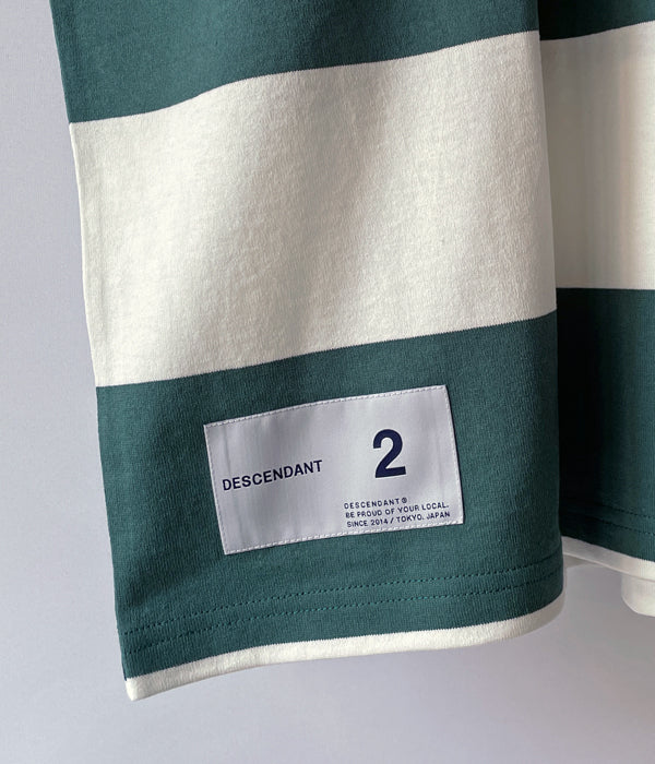 DESCENDANTから、SHIP SSが入荷しました。コットンジャージーを使用したボーダーSS T-SHIRT。フロントにDCDT-14、バックにSHIPロゴをデザインしました。肩の切り替えが無いゆったりとしたシルエットに仕立て、フロントにDCDT-14、バックプリントで大きくSHIP LOGOをデザインしました。右裾のサイズパッチもアクセントに。