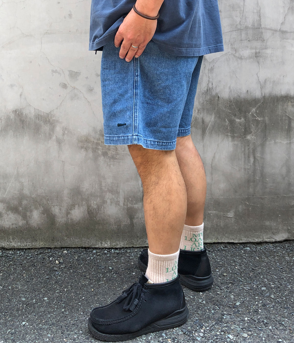 DESCENDANTから、SHORE DENIM BEACH SHORTSが入荷しました。12ozブロークンデニムを使用したビーチショーツ。ウェスト周りはゴム入りのイージー仕様、DESCENDANTロゴを配したループを設けた定番のディティール。ウォッシュ加工による着込んだ雰囲気がこなれた印象を与えます。