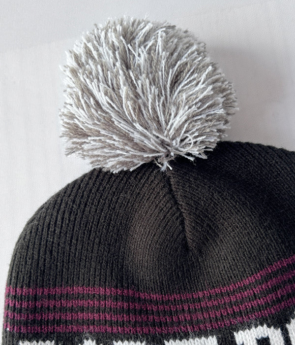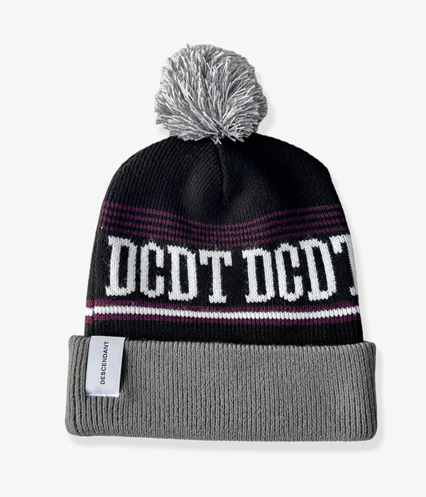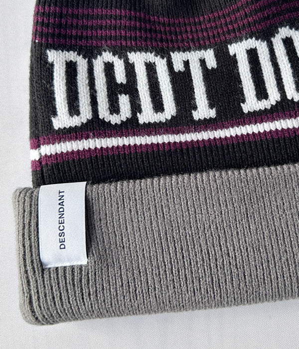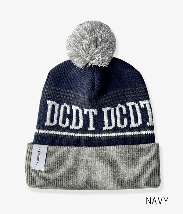 DESCENDANTから、SKI BEANIEが入荷しました。ストライプ模様とDCDTネームをジャカード編みで表現したクラウンに、リブ編みのカフを配色したスキーキャップ。かわいらしいポンポン玉房がポイントです。