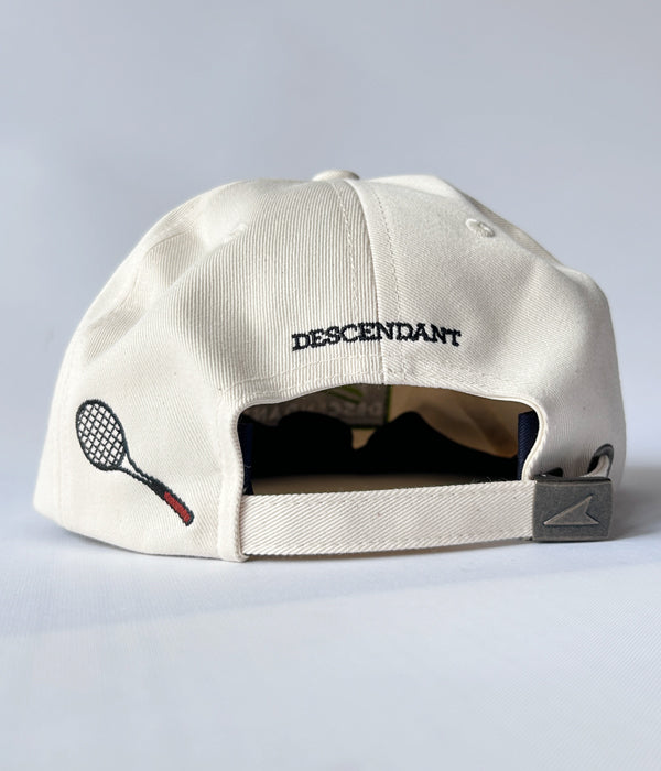 DESCENDANTから、SMASH 6PANELが入荷しました。定番のコットンカツラギ製の6パネルキャップ。フロントに大きくあしらったテニスをモチーフにしたSMASHのグラフィック刺繍が豪快なデザイン。背面にテニスラケットの刺繍入り。サイズ調整付き。