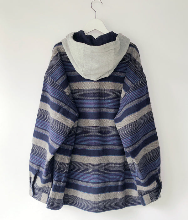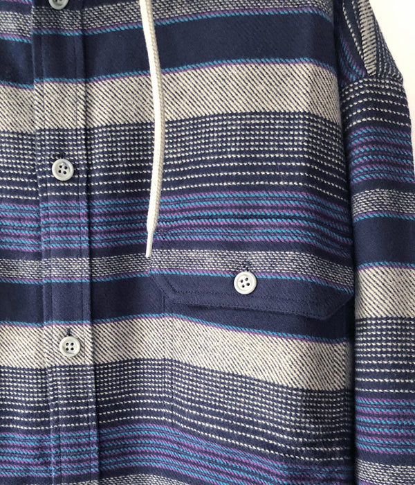 DESCENDANTから、SPICOLI HOODED LS SHIRTが入荷しました。先染めによる繊細な色味のストライプ柄生地を使用したフード付きシャツ。ゆったりとしたボックスシルエットに仕立て、2トーン仕様のフードと、フラップ付きのダブルポケットがポイント。
