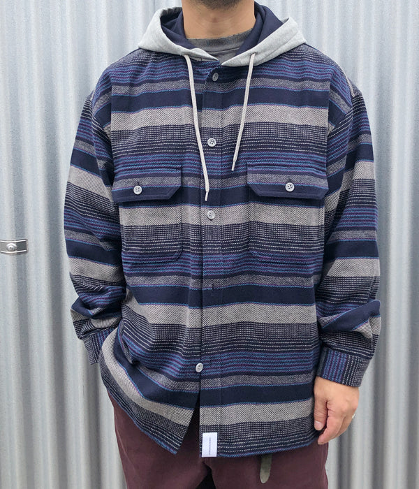 DESCENDANT/SPICOLI HOODED LS SHIRT (NAVY)