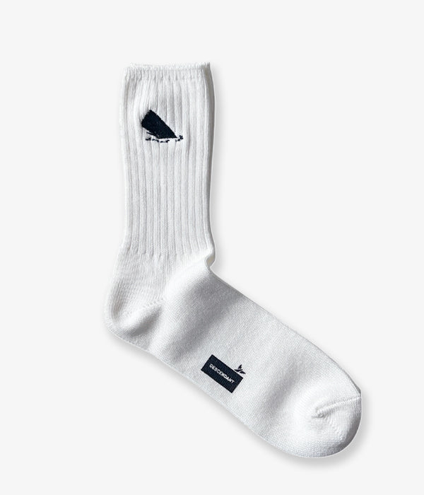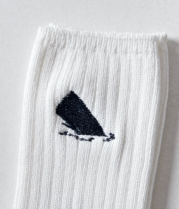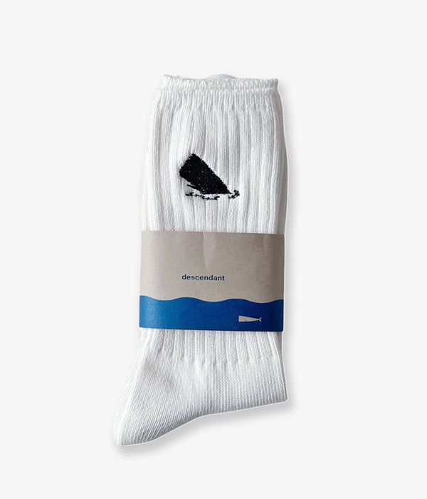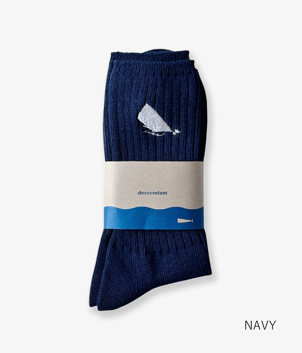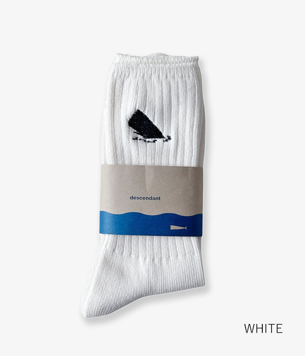 DESCENDANTから、SPYHOP SOXが入荷しました。リブ編みのクルーソックス。履き口付近に浮上するSPYHOPの刺繍がポイント。足裏にはBOX LOGOに隠れるクジラの尻尾をワンポイント。