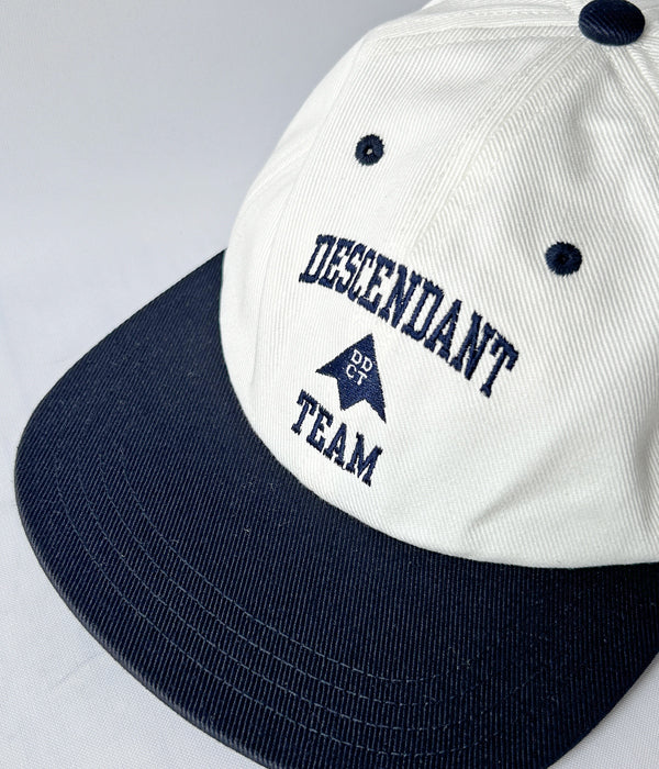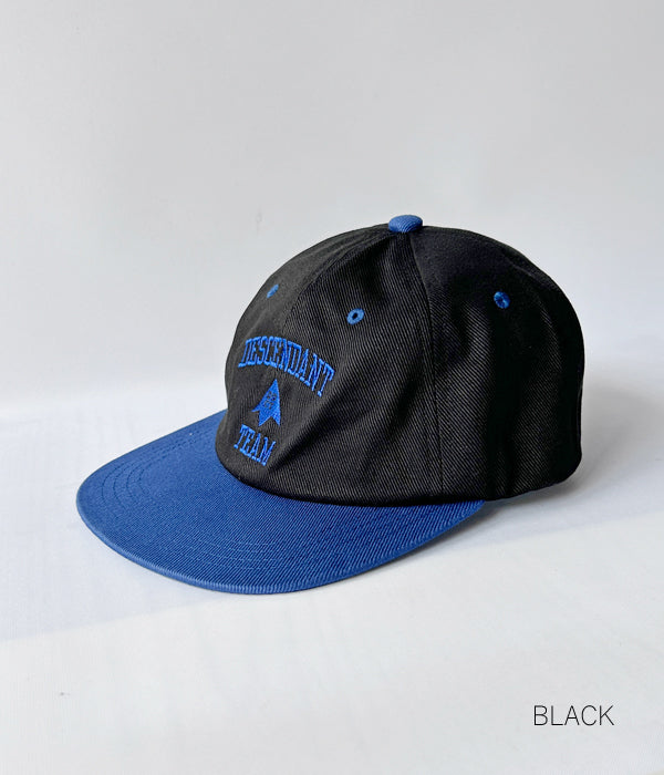 DESCENDANTから、TEAM 6PANELが入荷しました。コットンカツラギ素材を使用し、クラウンとバイザーを2トーンで切り替えたデザインの6パネルキャップ。TEAMグラフィックの刺繍を正面に、背面にARROWデザインの刺繍を配置。シンセティックレザーによるサイズ調整ストラップ付。