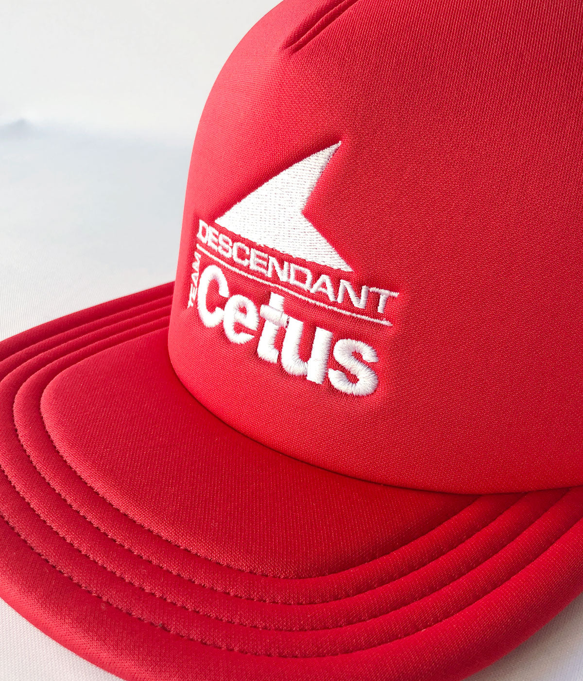 DESCENDANTから、TEAM CETUS TRUCKERが入荷しました。コンパクトニット × ナイロンメッシュを組み合わせたバイカラーデザインのトラッカーキャップ。フロントに大きくTEAM CETUのグラフィックの刺繍を配置したデザイン。背面のスナップバックでサイズ調整可能。